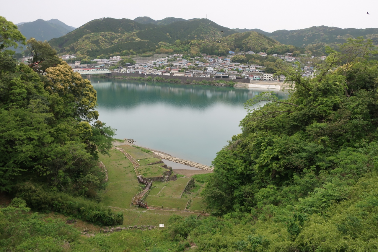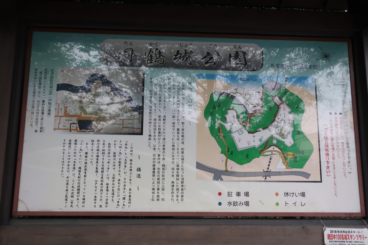 新宮市を流れる熊野川の南岸、丹鶴山に築かれた城跡が新宮城です。紀州藩の家老である水野氏の居城で、城跡には建築物は残っていませんが、立派な石垣の城郭が残っています。天守台のあった本丸からは優雅な熊野川の流れ、新宮市街を一望することができる展望の良い場所です。