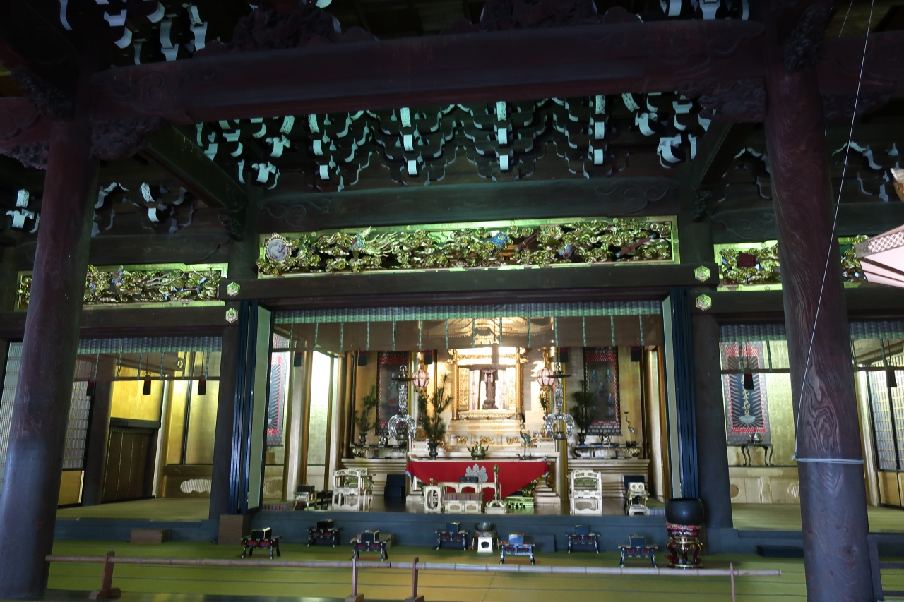 特に御影堂、如来堂はその建物の大きさも本願寺並の大きさがあり、内部も大空間、金箔で装飾された宮殿、精緻な彫刻が施された欄間など見所満載です。