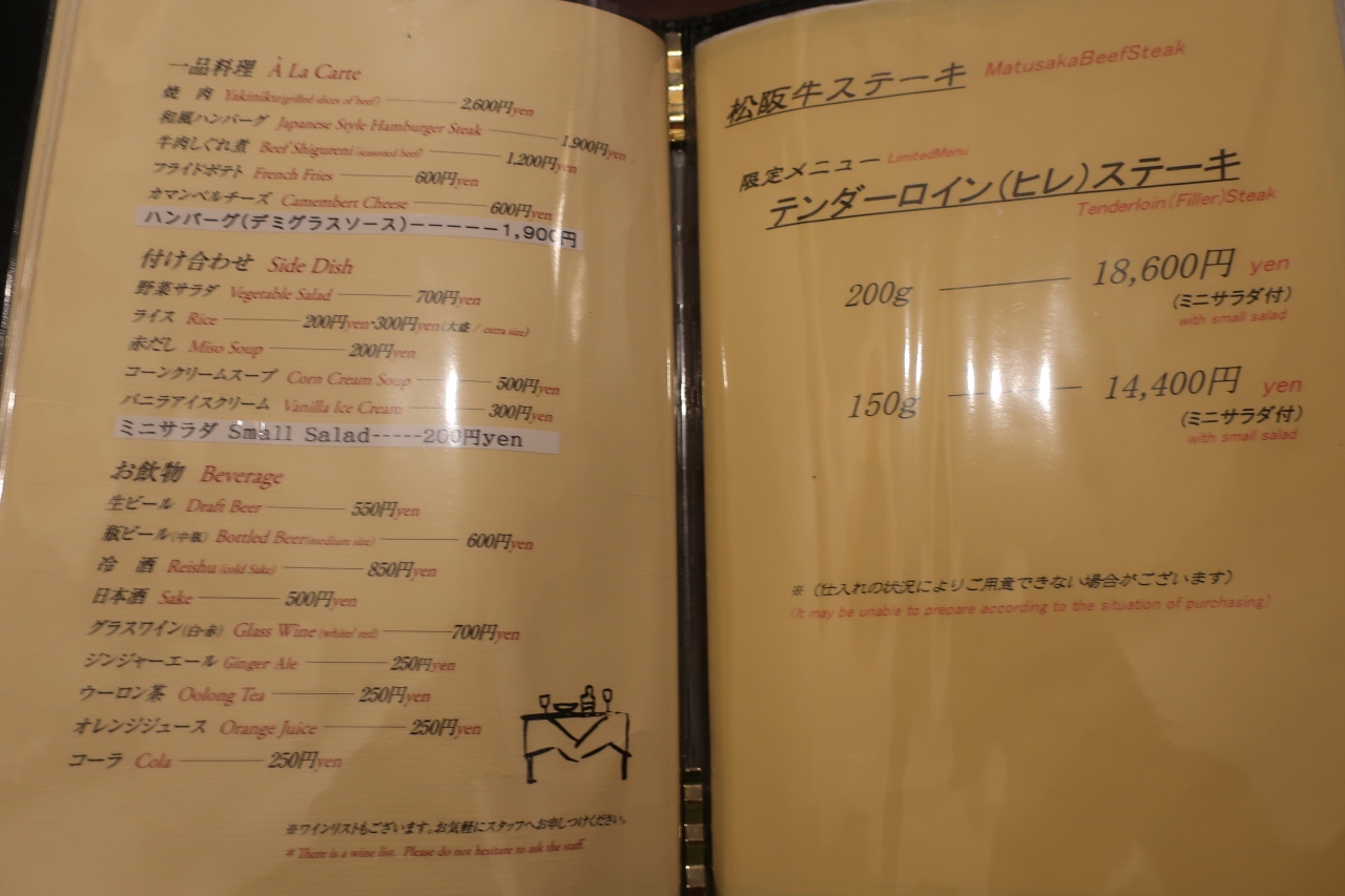 松阪牛のすき焼き・ステーキが食べられる牛銀本店。その左隣に洋食屋牛銀があります。牛銀本店で食べると軽く7,8千円は行きますが、洋食屋牛銀のメニューはハンバーグ、牛丼、ビーフカレー、すき焼き定食、焼肉定食などがあり殆どの物が3千円以下で食べられとてもお手頃な価格です。しかし、その分客も多く開店間際に行くと満席で30分程待たされました。頂いたハンバーグは特別美味しいと言う程ではありませんでした。やっぱり美味しいものを食べるには高いお金を出さないとだめなのかな?