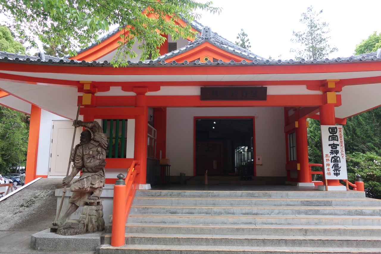 熊野速玉大神と熊野夫須美大神を祀る社は昭和になって再建されたもので朱の色がとても艶やか。また、境内にある御神木の梛の木、神宝館にある国宝の宝物はとても見応えがあり、必見です。