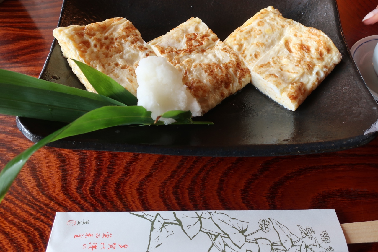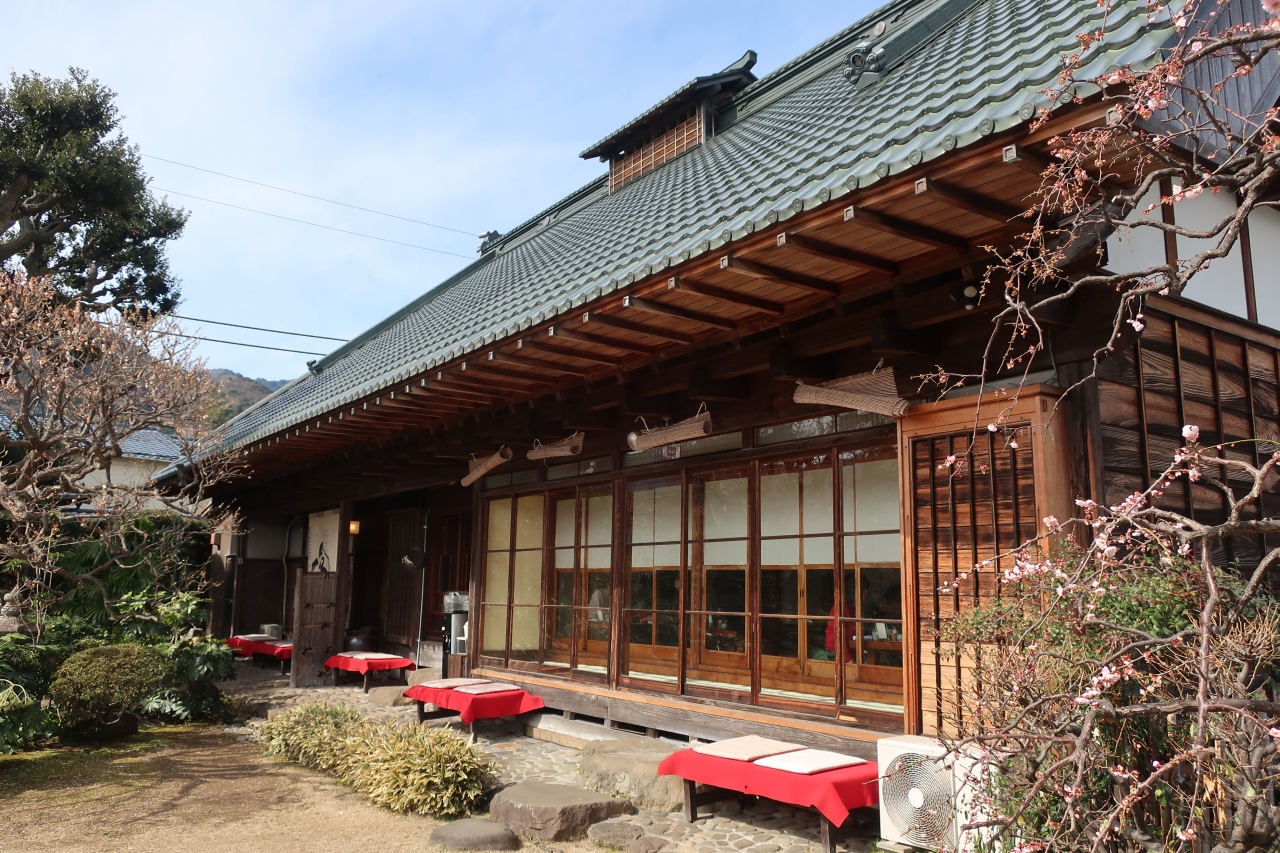 熱海の南、上多賀の135号線沿いにある古民家を改装した蕎麦屋さんです。約200年前に大井五左エ門が函南町に建てた古民家を、ブルーノ・タウトが設計したことで知られる熱海にある日向別邸で知られる日向利兵衛が別荘として移築したものです。