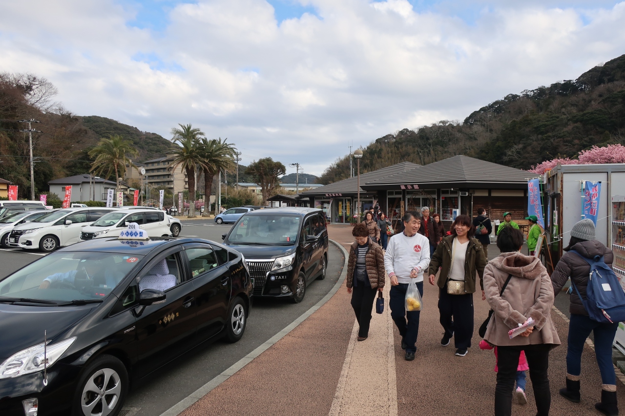 南伊豆を通る国道136号線の下賀茂温泉にある道の駅が湯の花です。みなみの桜と菜の花まつりの際に無料で駐車できると思い行くと、駐車場は有料でした。ここからは青野川の堰堤が裏にあり、アクセスが良いので当然かなと思います。