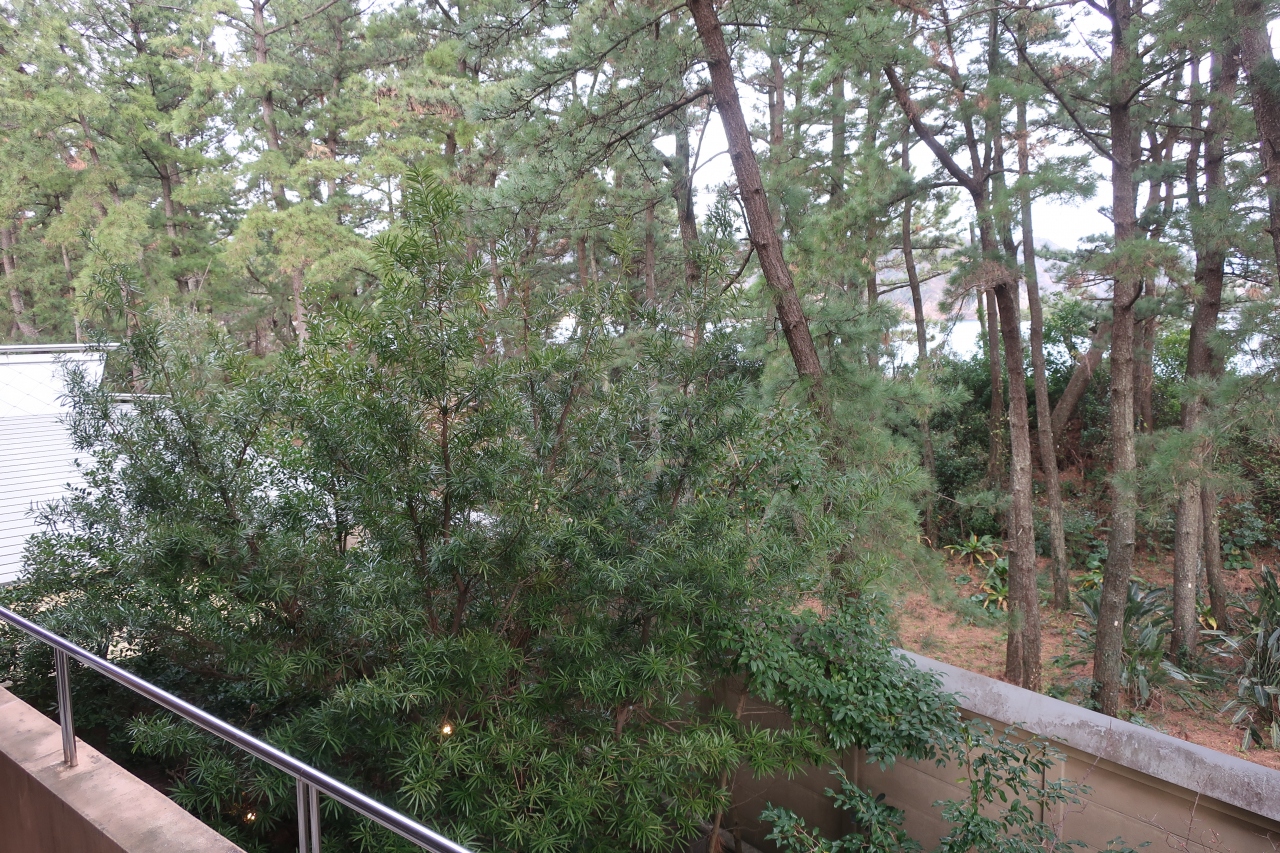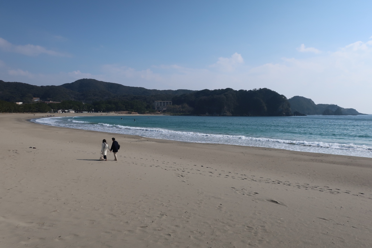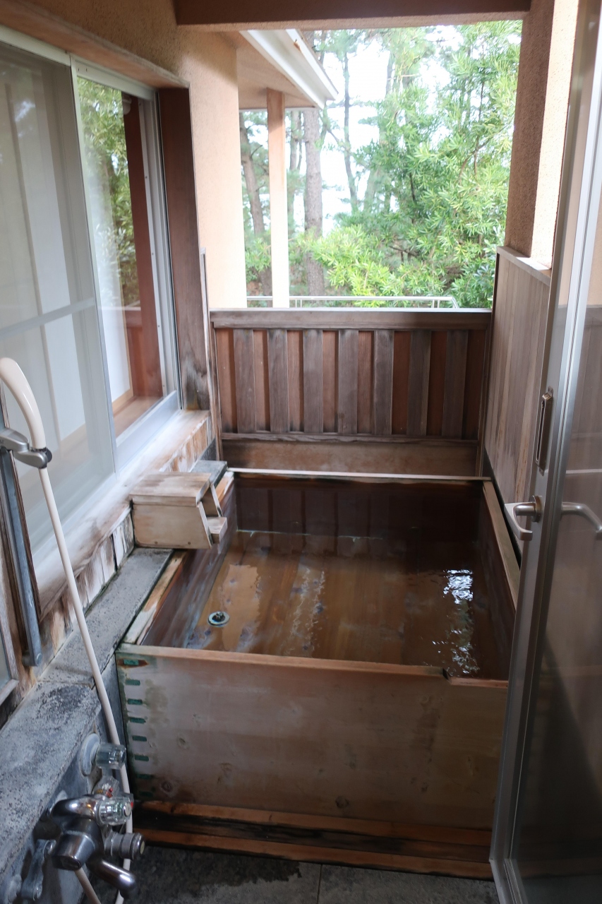 伊豆半島の南端にある弓ケ浜にある温泉旅館です。宿の前には弓ケ浜の松林が広がり、その先の海を臨むことが出来ます。宿泊した部屋は露天風呂付き和室、朝夕飯がついて二人で4万円強。一般的に露天風呂付きの部屋だと6,7万円はするのでコスパが良いです。かと言って夕飯には鮑や伊勢えびが付き、朝ごはんはバイキング形式ですが美味しい料理を頂けます。