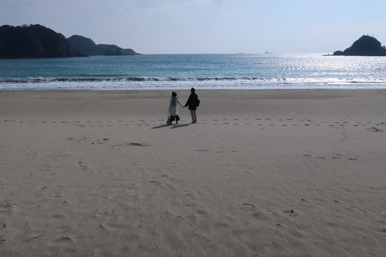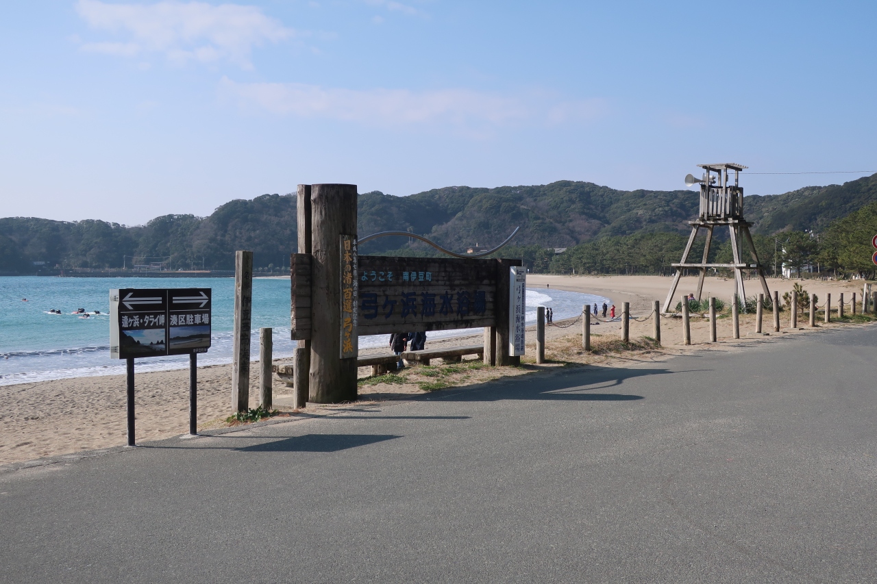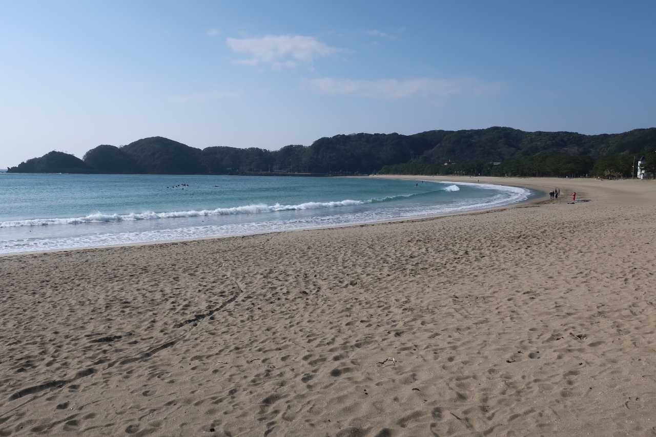 伊豆半島の南端にある弓ケ浜にある温泉旅館です。宿の前には弓ケ浜の松林が広がり、その先の海を臨むことが出来ます。宿泊した部屋は露天風呂付き和室、朝夕飯がついて二人で4万円強。一般的に露天風呂付きの部屋だと6,7万円はするのでコスパが良いです。かと言って夕飯には鮑や伊勢えびが付き、朝ごはんはバイキング形式ですが美味しい料理を頂けます。