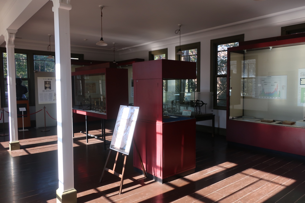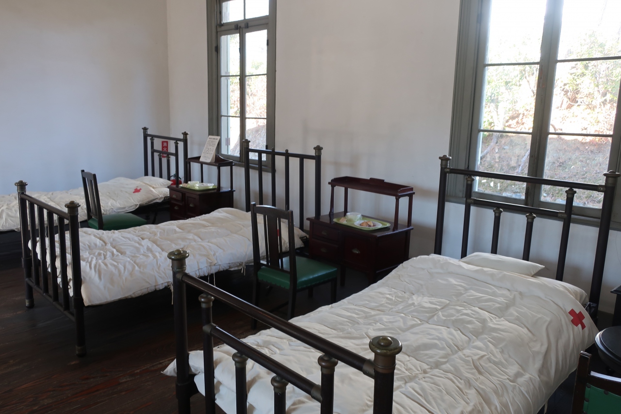 明治村4丁目にある広場の北側にある石垣の上にある洋館の様な建物が日本赤十字社中央病院病棟です。明治23年に渋谷の広尾から移築された建物はなんと、迎賓館を設計した片山東熊の設計。ハイデルベルク大学病院を模しているそうです。内部にはベッドが並び当時の病室の姿が再現されています。訪れたとき、ちょうど女性モデルの撮影が行われていたのですが、許可が取られているのか分かりませんが色んな所で多くの機材を使って撮影が行われており、邪魔でした。