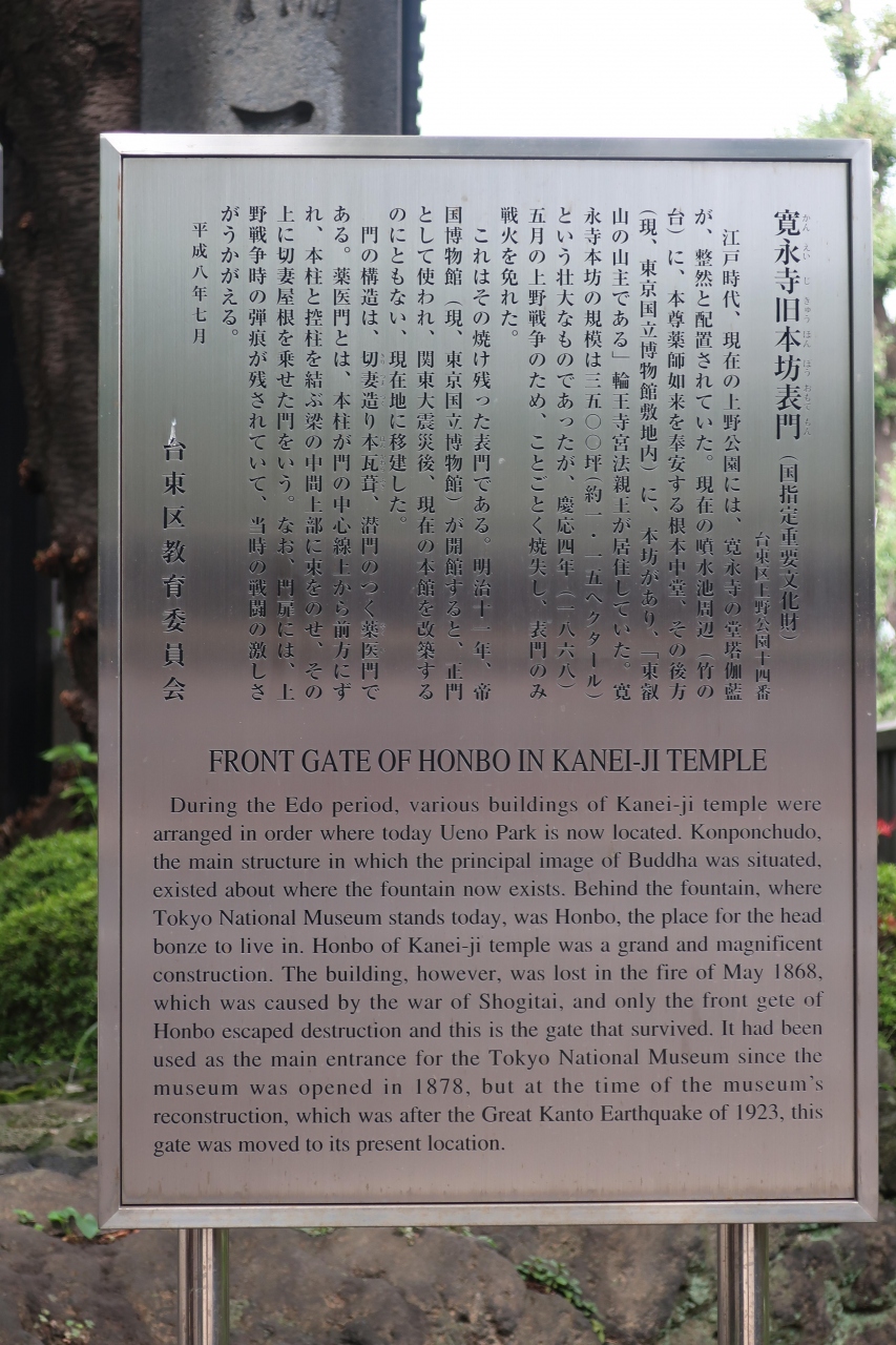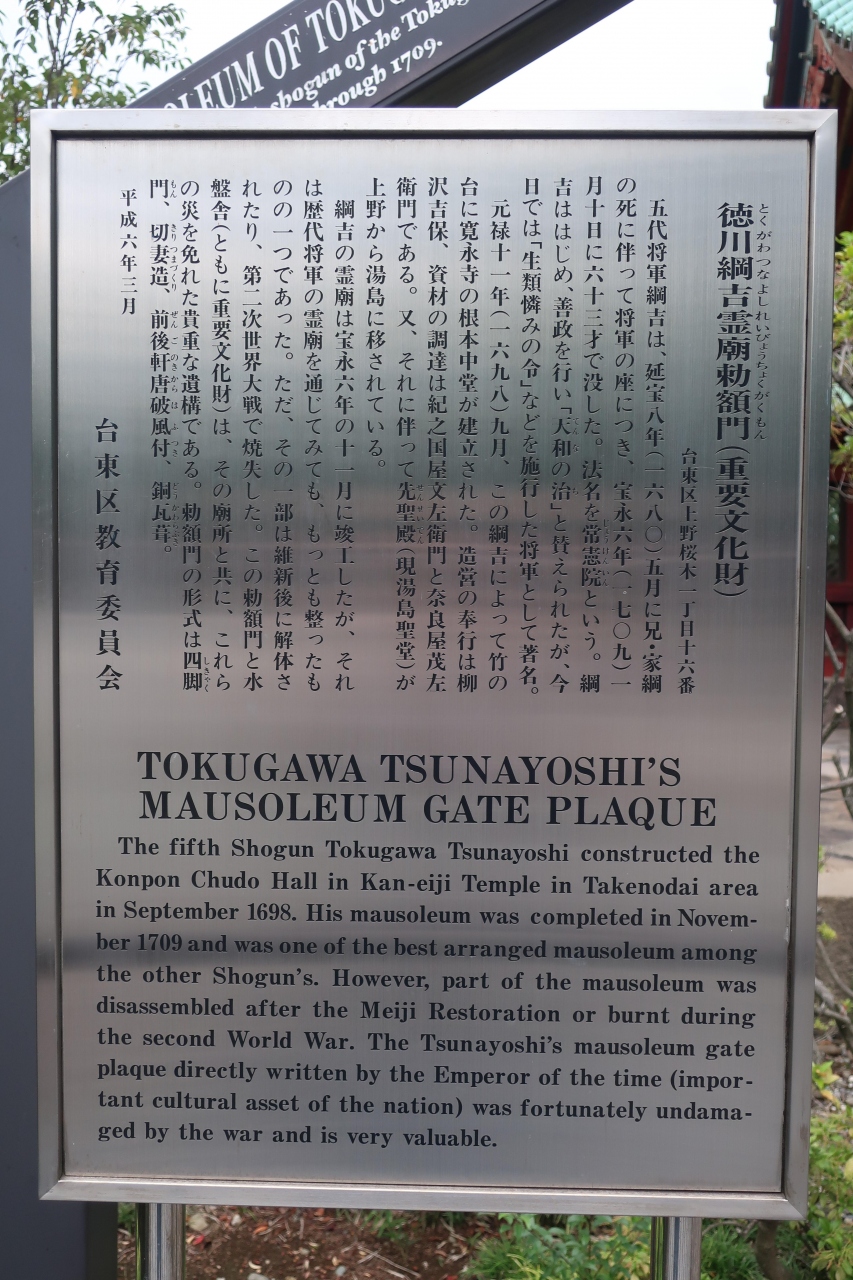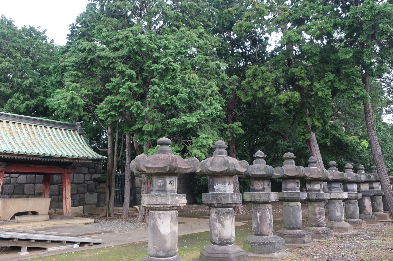 東京国立博物館の裏側(北側)に寛永寺の墓地があり、その奥まった所に徳川家霊廟があります。2か所に分かれ、家綱、綱吉、吉宗、家治、家斉、家定公が埋葬されています。公開されてはおらず石積みの壁や、勅使門等を外から眺めるしかありません。しかし、外側を歩いてみるだけでも、その大きさはさすがに将軍。以前参拝した慶喜公の廟とは大分異なりました。