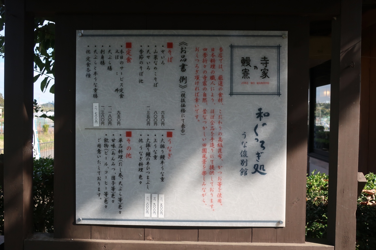 横浜の住宅街の中にこんな田園風景があるとは余り知られていない寺家ふるさと村。その四季の家の中に併設されている食事処が寺家乃鰻寮です。店名の通り鰻がメイン料理ですが、それ以外にもお蕎麦、天ぷらなど、和食メニューがあります。