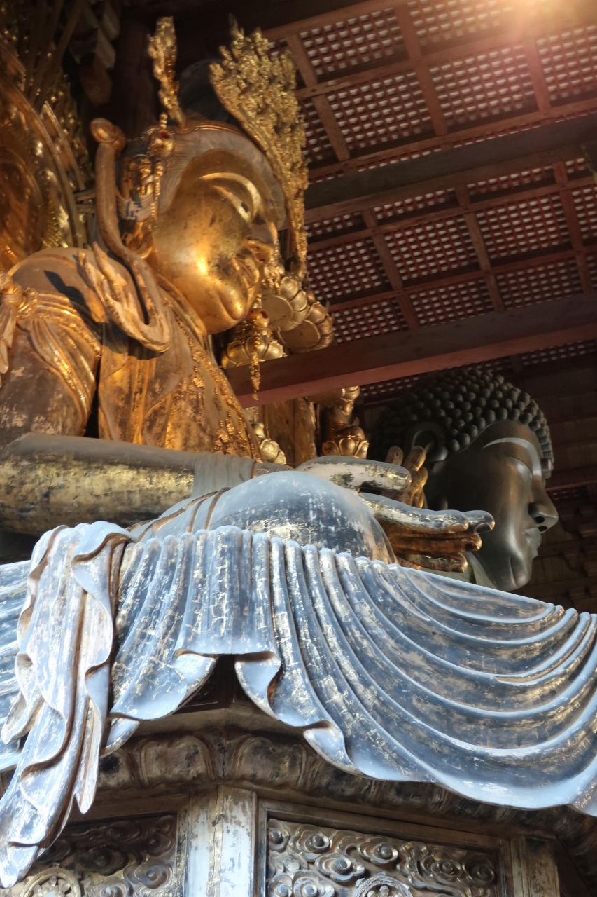 日本一大きな大仏が安置されているのが東大寺金堂(大仏殿) 。これまでも修学旅行などで何回か訪れたことがありますが、何回来ても大仏様の大きさには圧倒されます。それもさることながら、大仏を覆う大仏殿の大きさも凄いの一言。300年前にどうやってこの様な大きな建物を作ったのか感心させてれます。柱の太さも半端なく現代ではこの様な柱となる大木は集まらないでしょう。