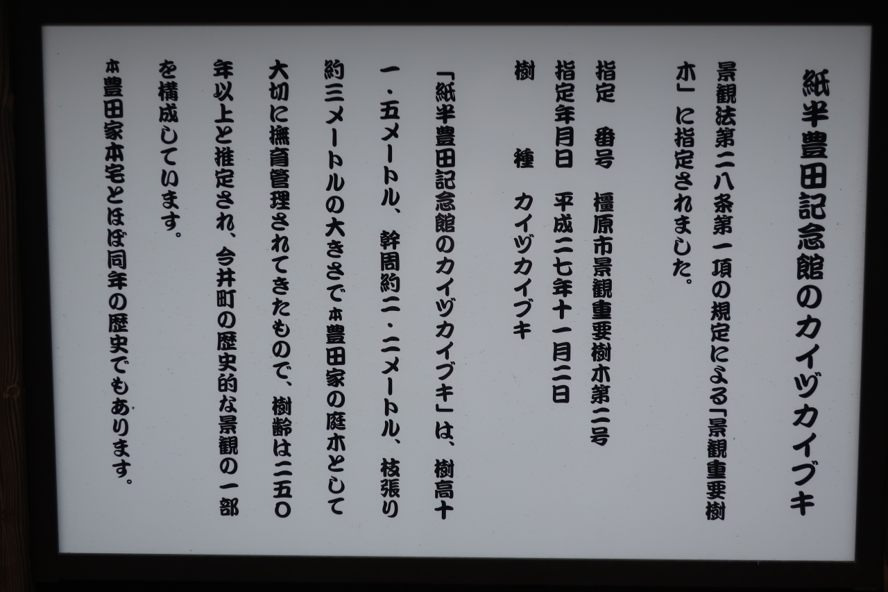 そして、ここで一番目立つのでは敷地に植えられたカイヅカイブキです。樹齢250年の巨木は通りを歩いていても、すぐわかるほど特徴的な形をしています。今井町を代表する名木です。- 旅行時期