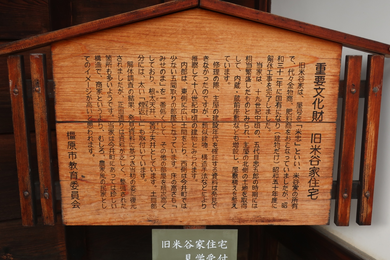 古い町並みが残る奈良今井町の中町筋中央部辺りに音村家と旧米谷家が隣り合い並んで建っています。旧米谷家は無料で公開されており、予約無しでも気軽に入れます。中にはボランティアガイドの方が居られ建物の説明を親切にしてくれました。