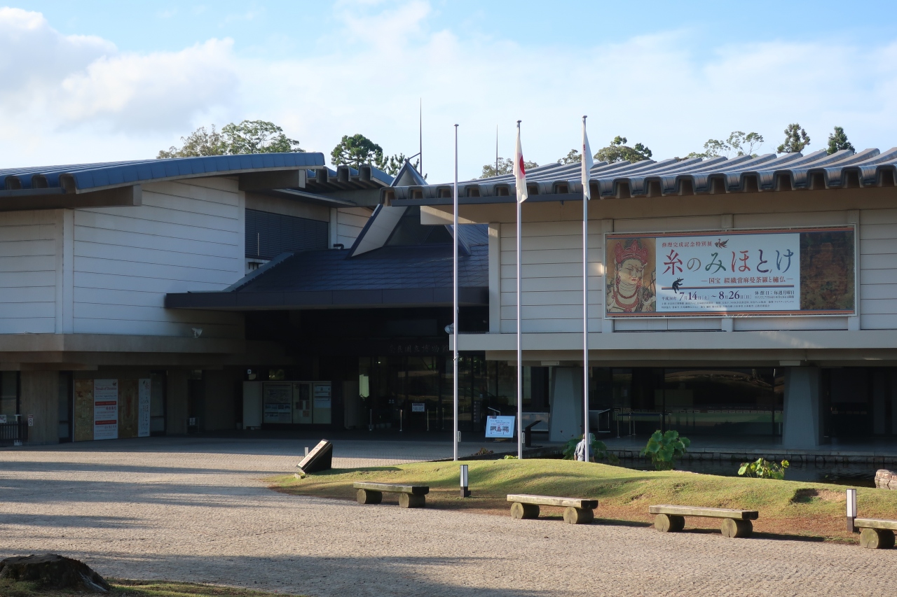 日本に4つある国立博物館の一つ。奈良公園の一角、興福寺の東に隣接する所に奈良国立博物館はあります。秋に開催される正倉院展が有名ですが、常設展も見る物が沢山あります。今回訪れた夏は特別展「糸のみほとけ」が開催されていましたが、そちらは見ず520円で見られる常設展示をみました。国立博物館だけあり、多くの国宝や重文があり特に仏像が多くあります。片山東熊設計の本館は建物自体が重要文化財に指定されており、見物です。