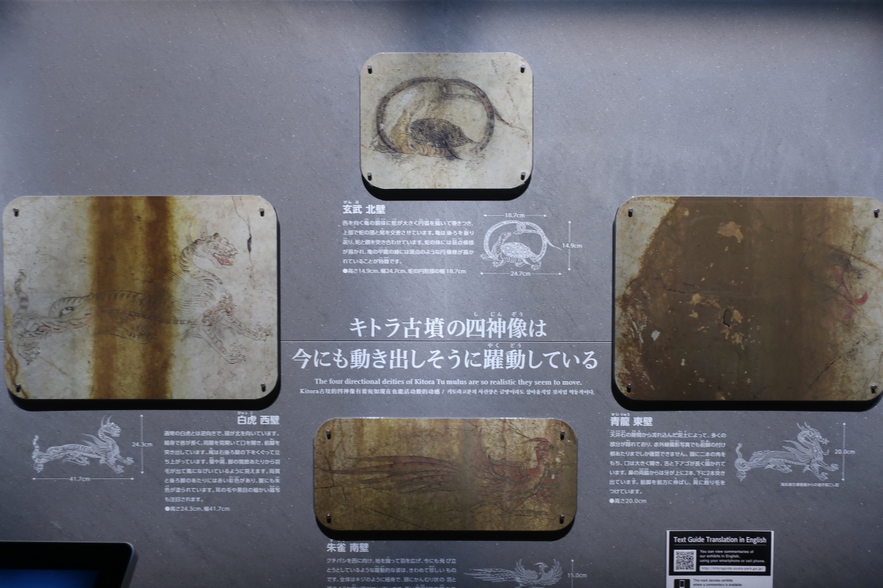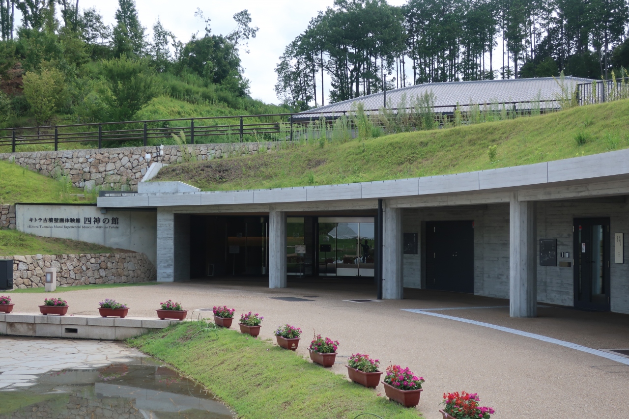 高松塚古墳に次いで、彩色壁画が発見されたキトラ古墳の壁画や出土品を保管・展示する施設です。1階に資料館があり、キトラ古墳の概要、発掘の時の資料、壁画の概要などが展示されており、これを目的に行ったのですが、丁度年4回行われる壁画展示がやってました。事前申し込みをしていなかったので、見られないと思ったのですが、意外なことに当日受付もやられており、南壁(朱雀)などの本物を見ることができました。しかも無料。以前東京で公開したときは長蛇の列、勿論有料でしたので、得した気分です。
