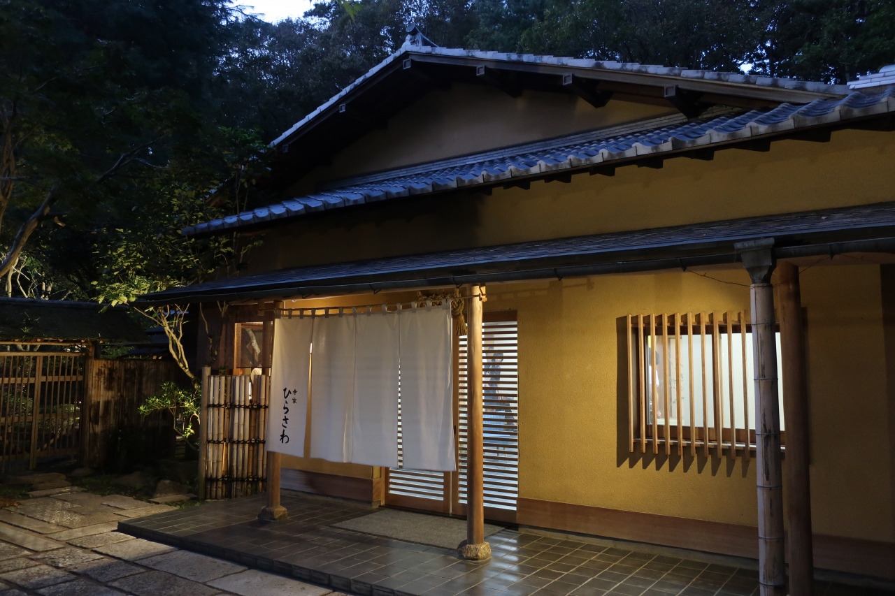 横浜の住宅街の中に田園風景が広がる寺家町。その田んぼに面した山中に寺家ひらさわがあります。木々の茂る緩い坂道を少し上った所にある純和風の別荘の様な邸宅がお店です。