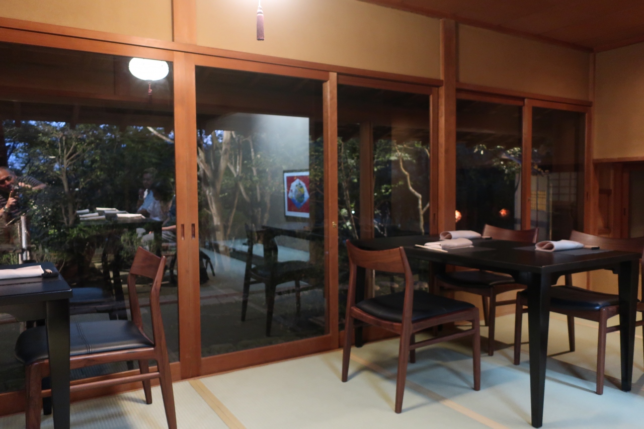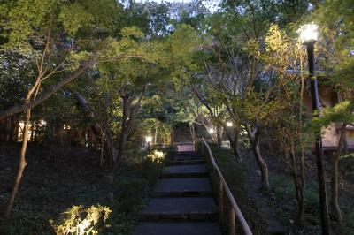 店内からはライトアップされた木々が綺麗で、紅葉時は素晴らしい景色が見られると思います。