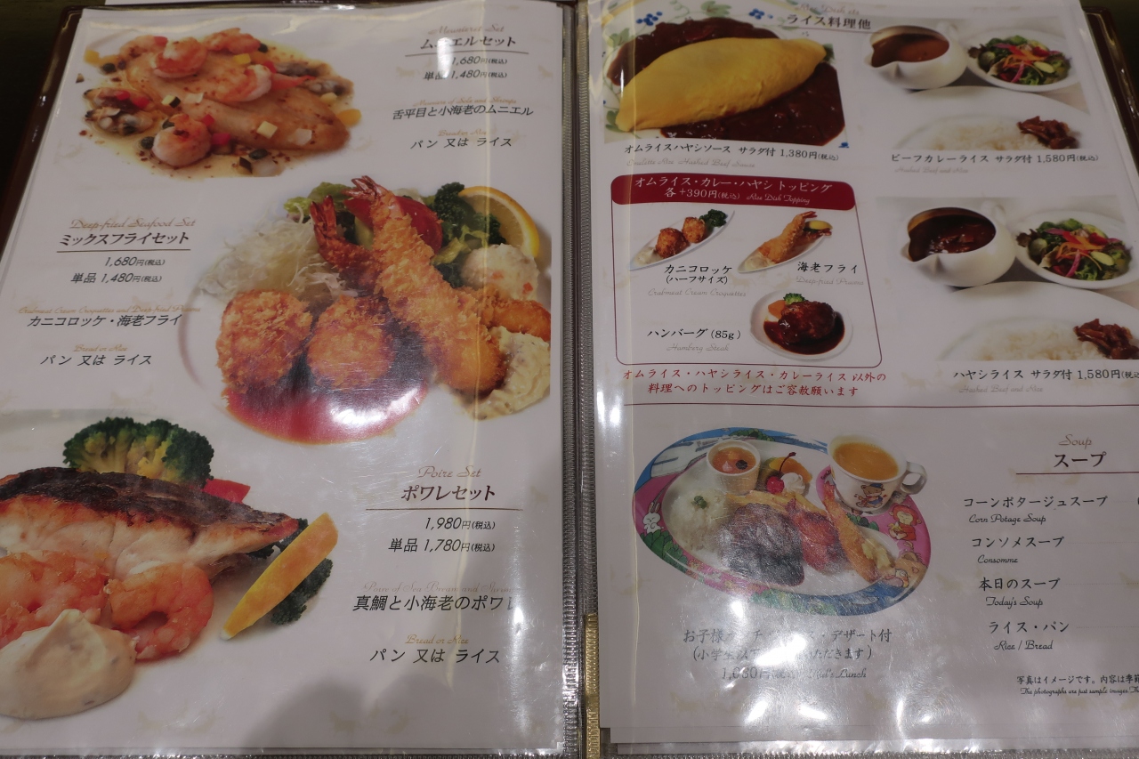 上野恩賜公園の中にある洋食の名店 上野精養軒の出店が上野駅前の3153ビルの3Fにあります。夕方17時半頃に行くと全く待たずに入店することができました(店を出た18時半には入店待ちの人がいました)。注文したのは人気のオムライス。フワフワのオムレツで包んだケチャップライスに味わいあるデミグラスソースが掛かり、納得の味。トッピングで追加したエビフライもサクサクで流石、精養軒。