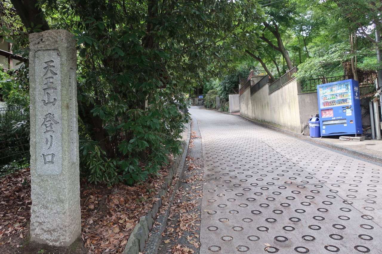 JR山崎駅から線路を渡った先から上り坂になります。270mと低い山ではありますが、意外と傾斜があり、山頂からの眺めは良くありませんが、山崎城の痕跡が見られます。