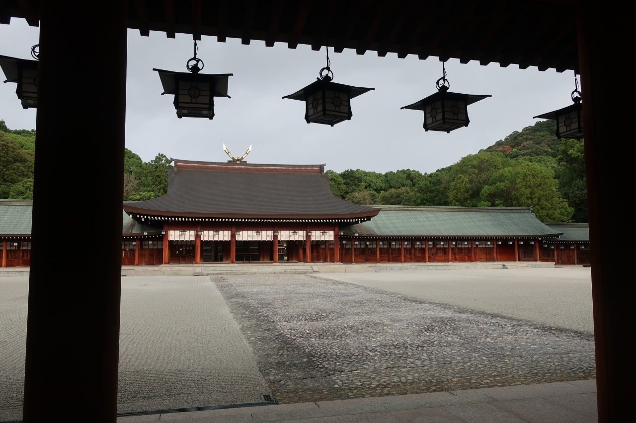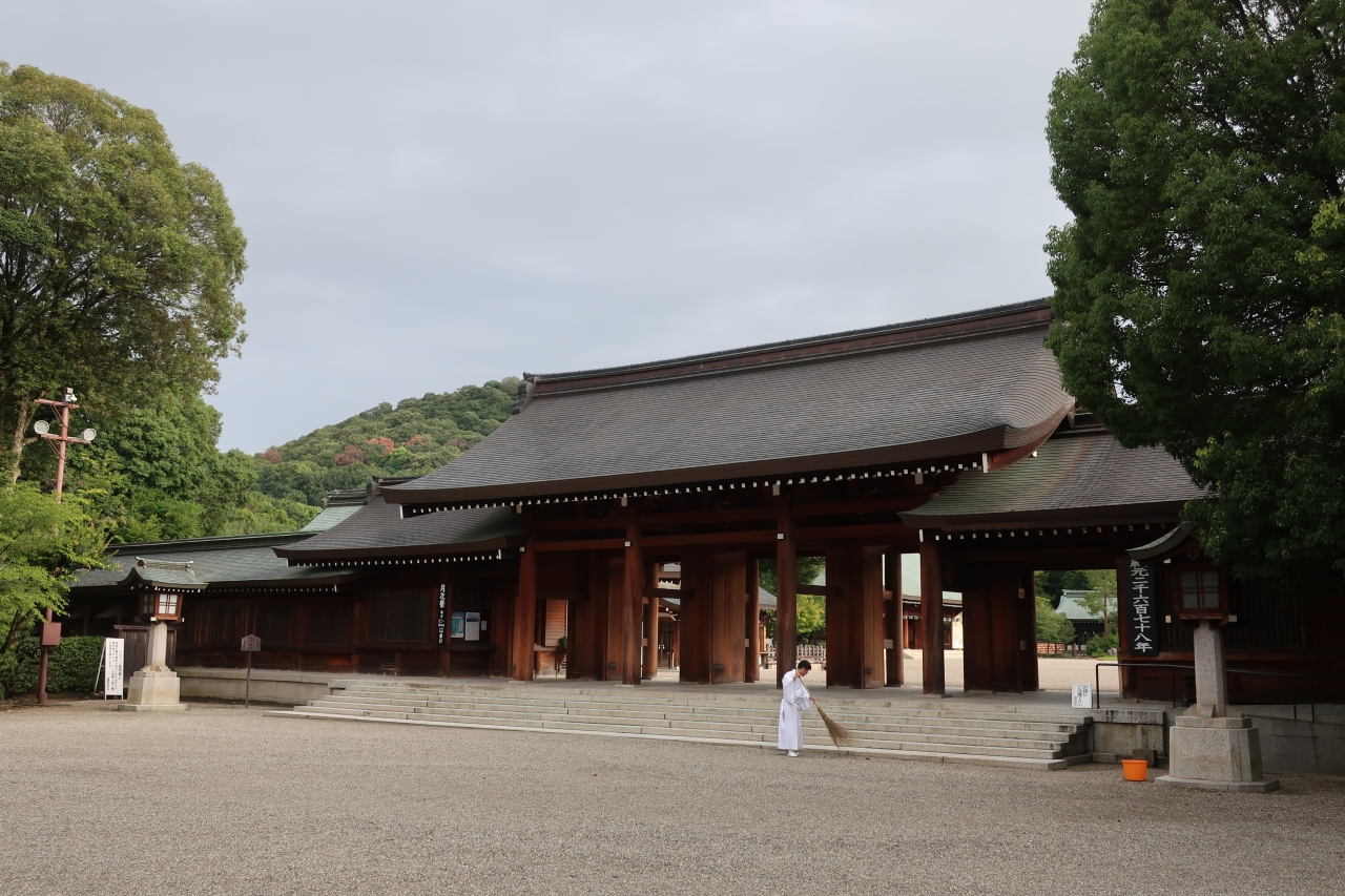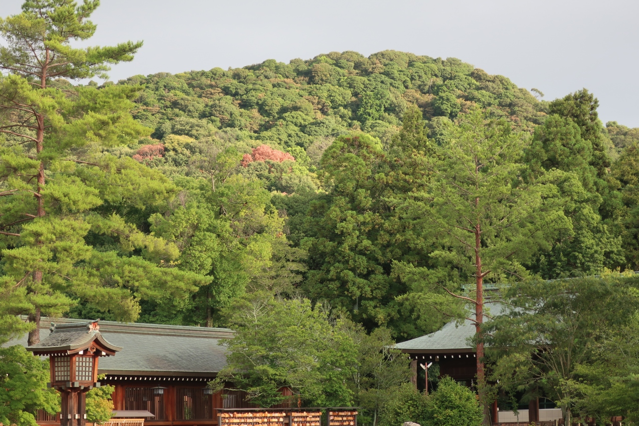 橿原神宮の本殿の裏には畝傍山が御祭神のように見えます。