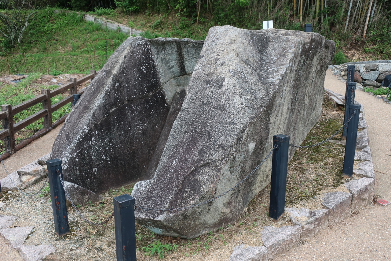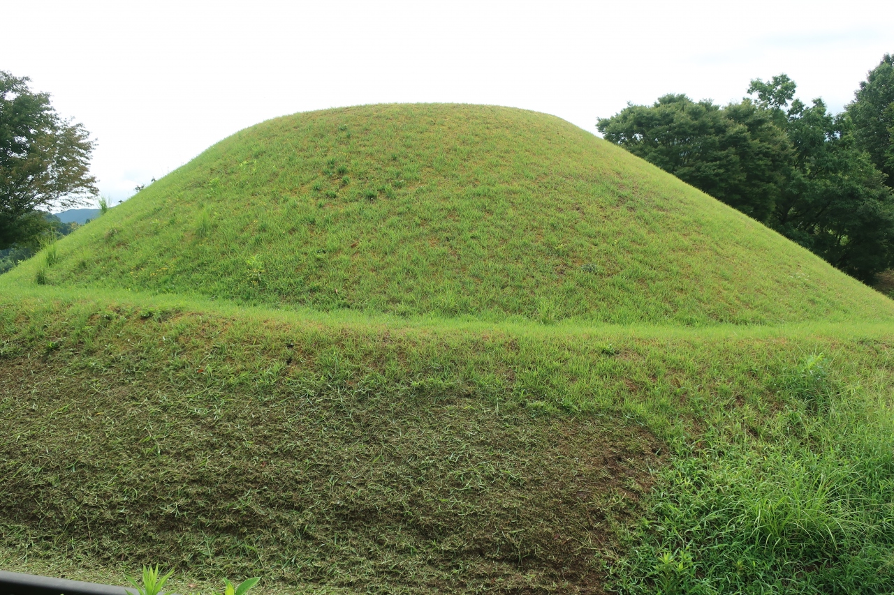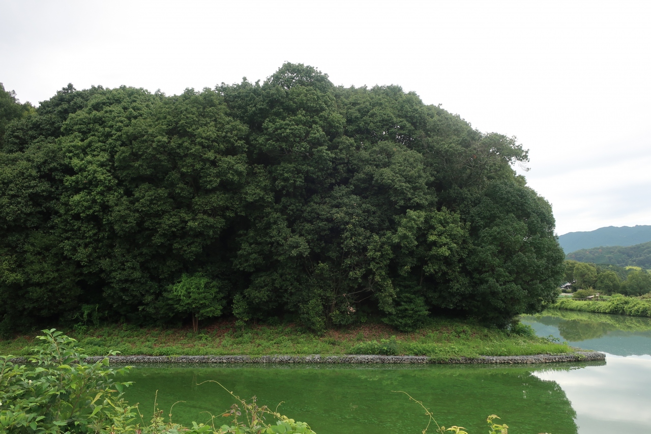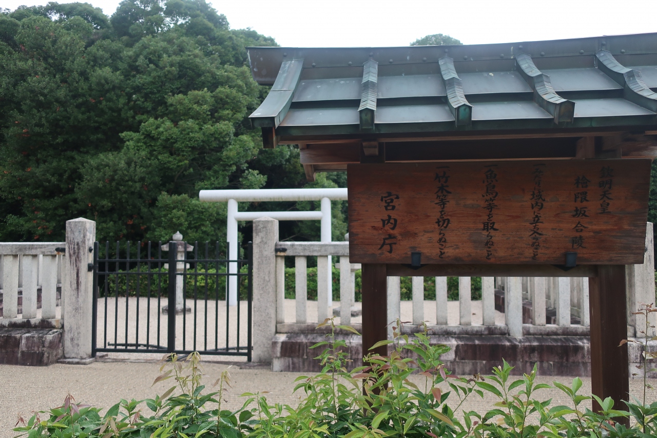 飛鳥駅から北東に10分程歩いた所に欽明天皇陵があります。最初の女帝として知られる推古天皇のの親である欽明天皇の陵は明日香村唯一の前方後円墳で濠に囲まれた森となっています。殆どの観光客は欽明天皇陵を目当てに来訪するのではなく、西隣にある吉備姫王墓の猿石を目当てに来た人がついでに見学する程度です。