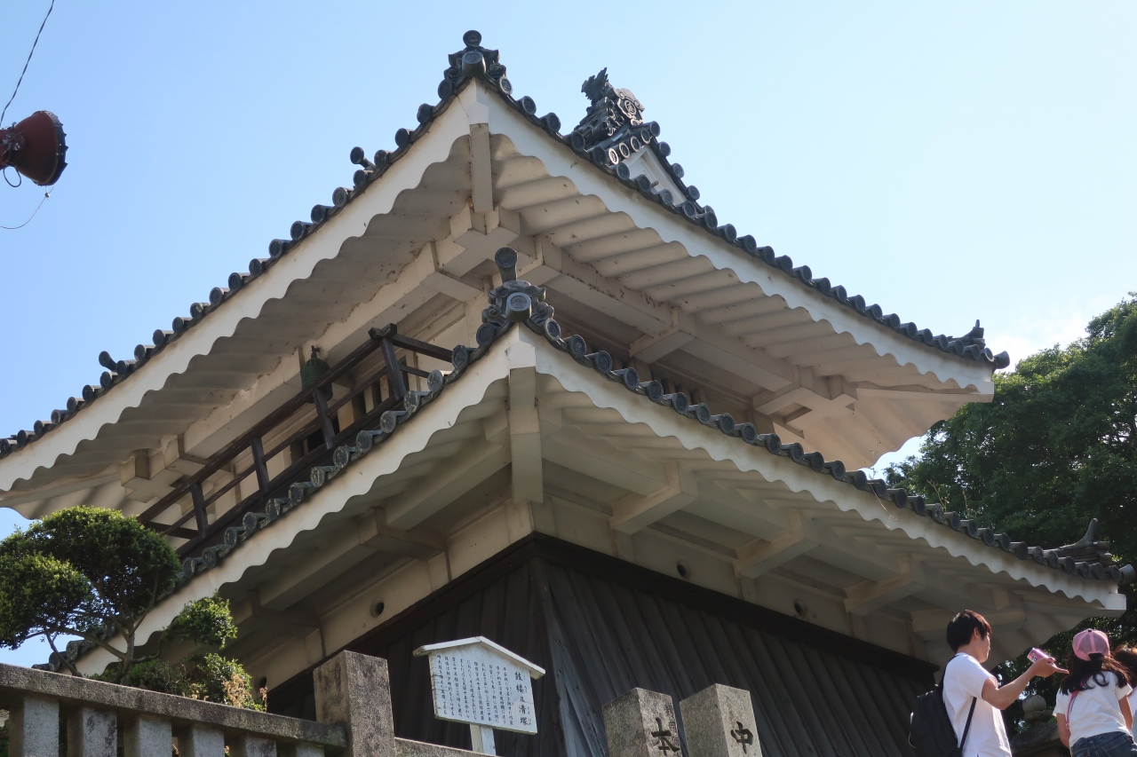 金刀比羅宮の石段を登り始めて351段目、大門の左手前にある2階建ての建物が金刀比羅宮 鼓楼です。1710年に建てられたもので、今でも朝と夕方に時を告げる太鼓が打ち鳴らされています。西本願寺や法隆寺で見た鼓楼とは雰囲気が違い、お城の櫓の様な造りで金刀比羅宮の他の建物とは違った雰囲気があります。