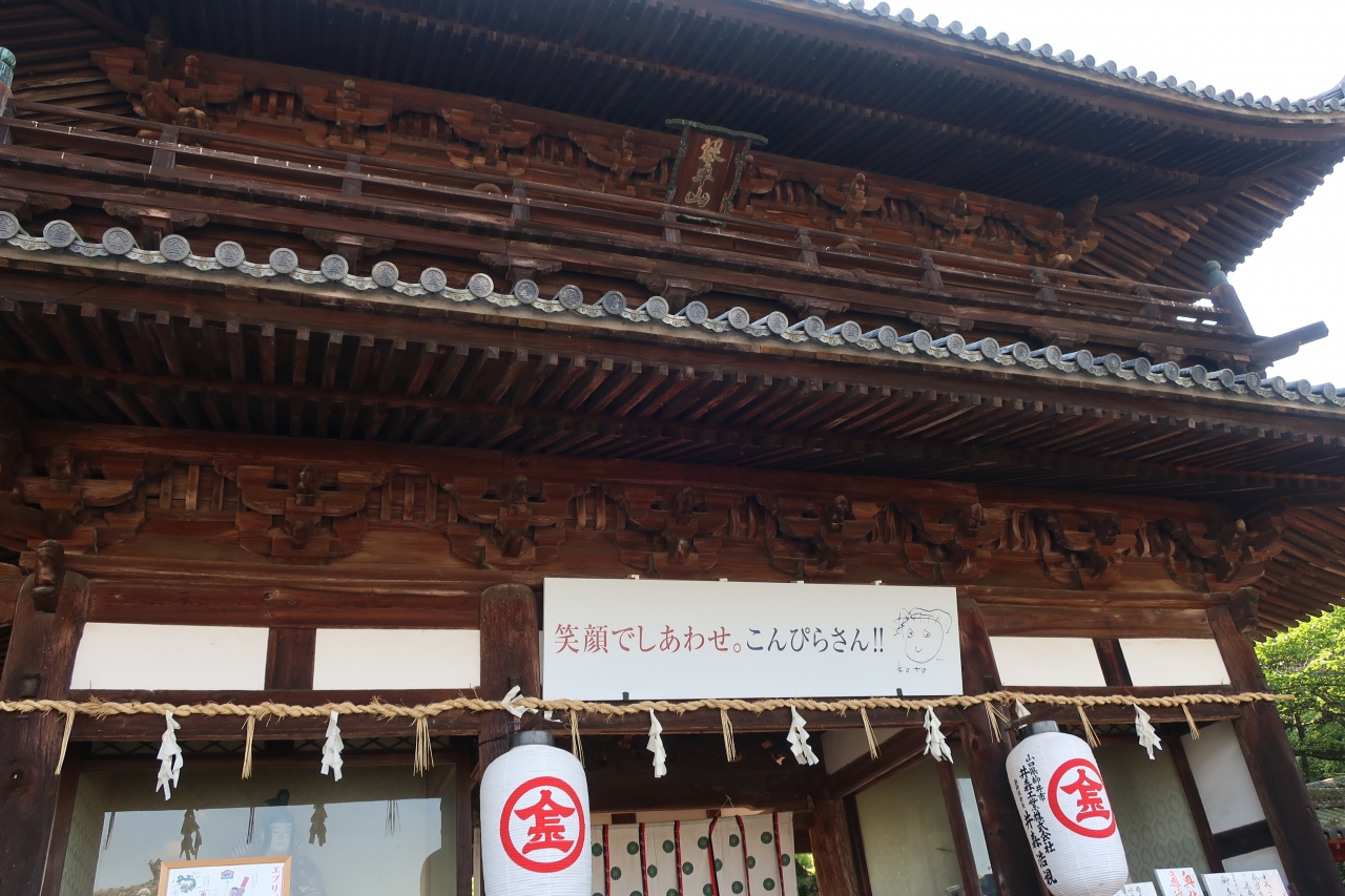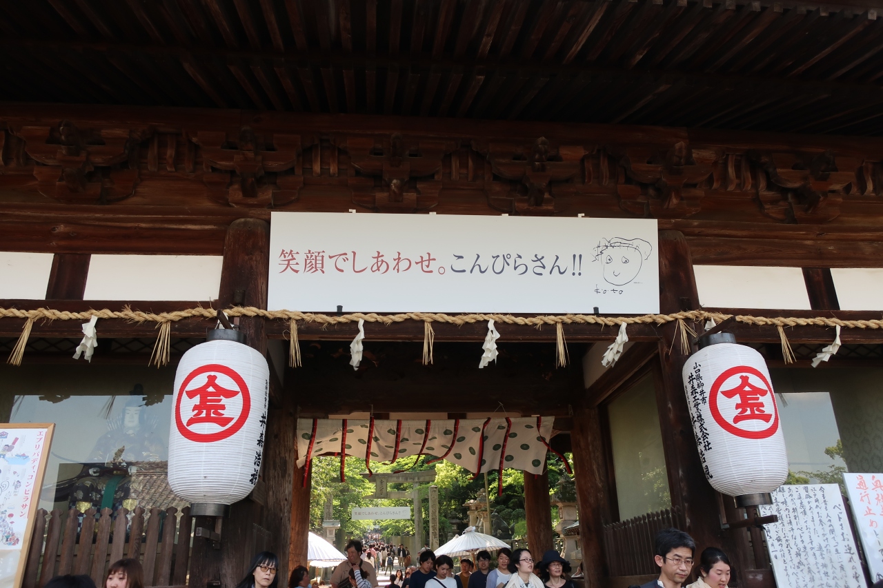 金刀比羅宮の石段を登り始めて365段目、本宮までに石段785段のほぼ中間点にある大きな楼門が金刀比羅宮 大門です。1650年に水戸光圀の兄である松平頼重候から寄進されたものだそうです。この門がゴールではなく、この門を潜るとやっと金刀比羅宮の境内になります。ここから先は勾配もきつくなってくるので、ここらで一服すると良いでしょう。