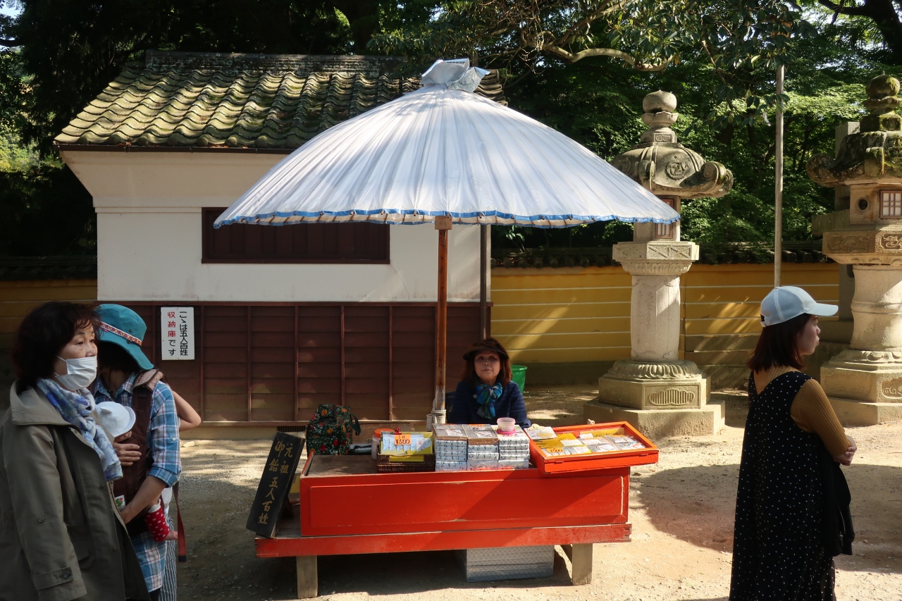 書院の右手には神礼所があり、何とそこでは御守りが売られています。本殿まで行かなくとも御守りを買えるのですが、上手くできたものでウコン色の御守りはここでは買えません。- 旅行時期