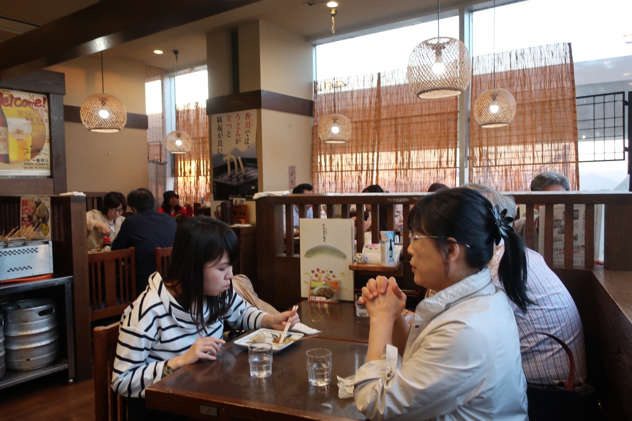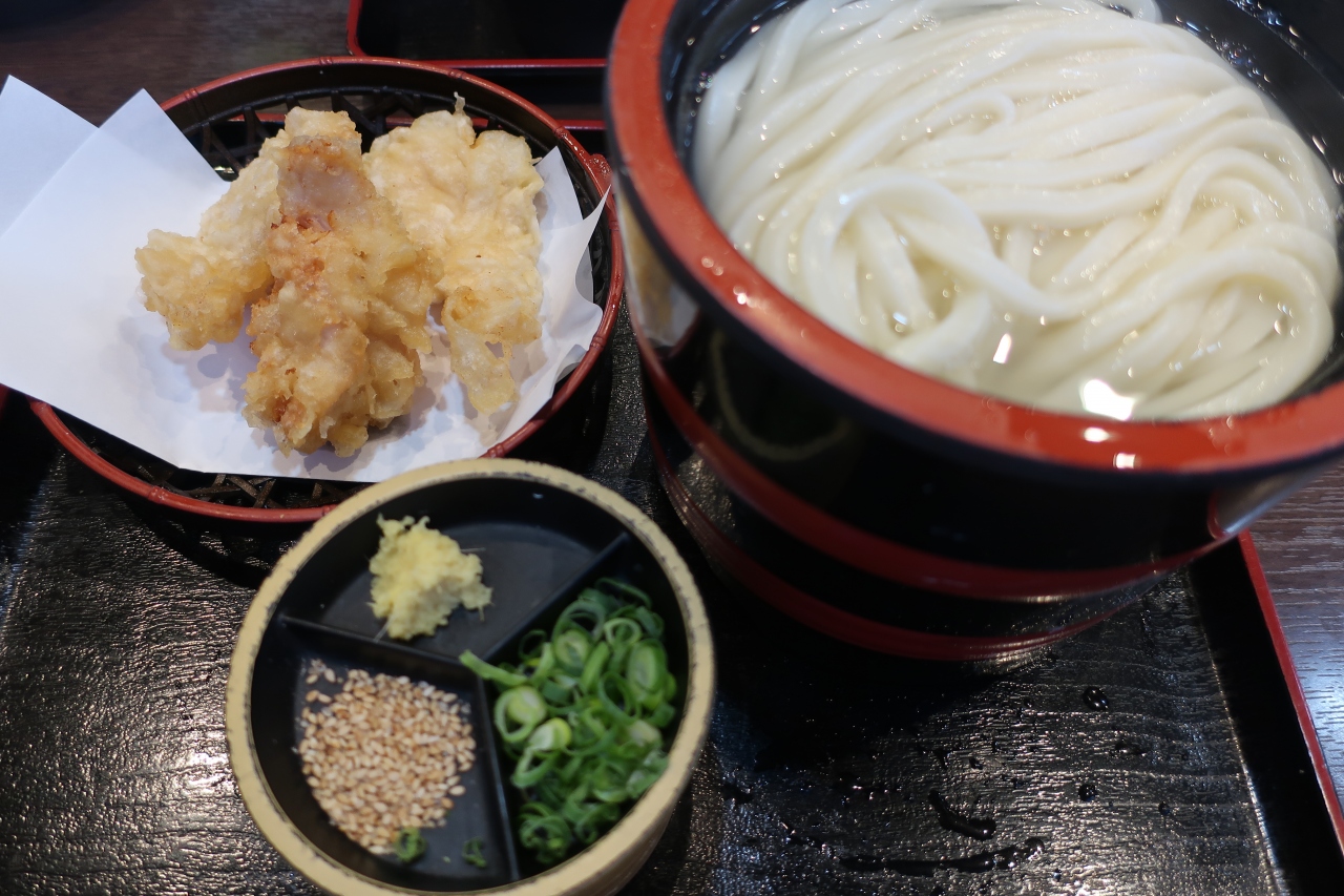 頂いたのはのオリーブ鶏のとり天が付いた釜揚げうどんと、丸亀名物骨付き鳥。味は市内で食べたうどん店よりは1ランク落ちるなぁと感じました。骨付き鳥も一鶴で食べたものよりも数段落ちます。そしてコスパも悪くちょっと損した気分になりました。- 旅行時期