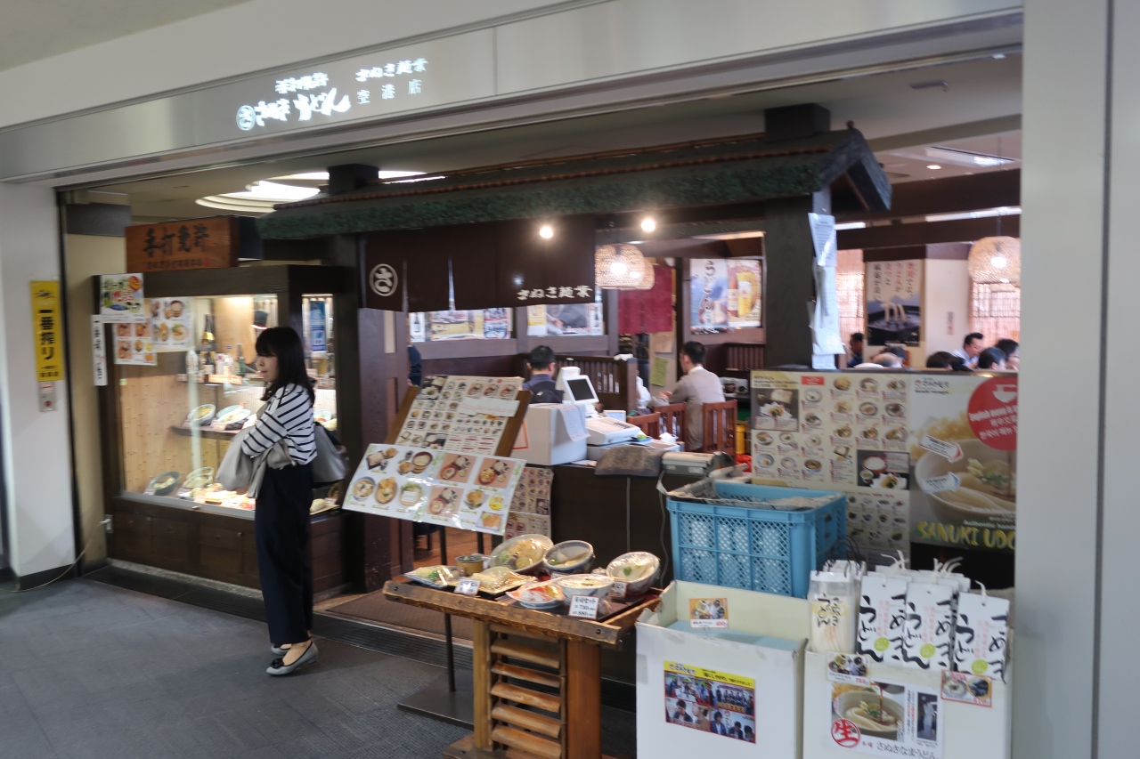 高松空港の出発ロビーにある讃岐うどんのお店です。連休の最終便に東上する前に最後の讃岐うどんを食べに入りました。連休ということもあり18時半に行くと満席で席が空くまで10分程待たされました(1階のうどん店の方は空いてました)。