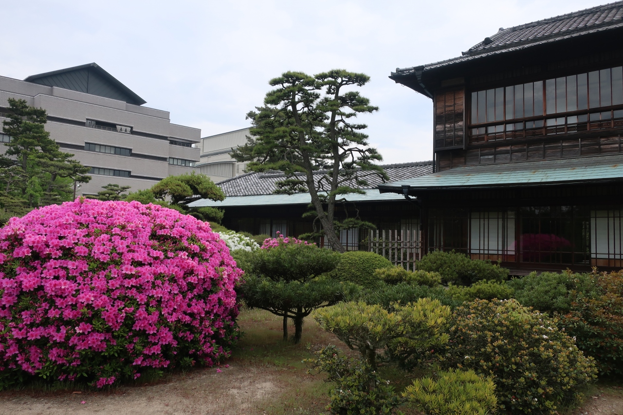 玉藻公園(旧高松城)の中に建てられた旧高松城主の松平家の別邸であった建物です。三の丸の建てられた披雲閣は内部が見られるのかと思っていたのですが、非公開。しかし、披雲閣の前に造られた庭園は公開されており、GW中はつつじの花が咲きとても綺麗です。