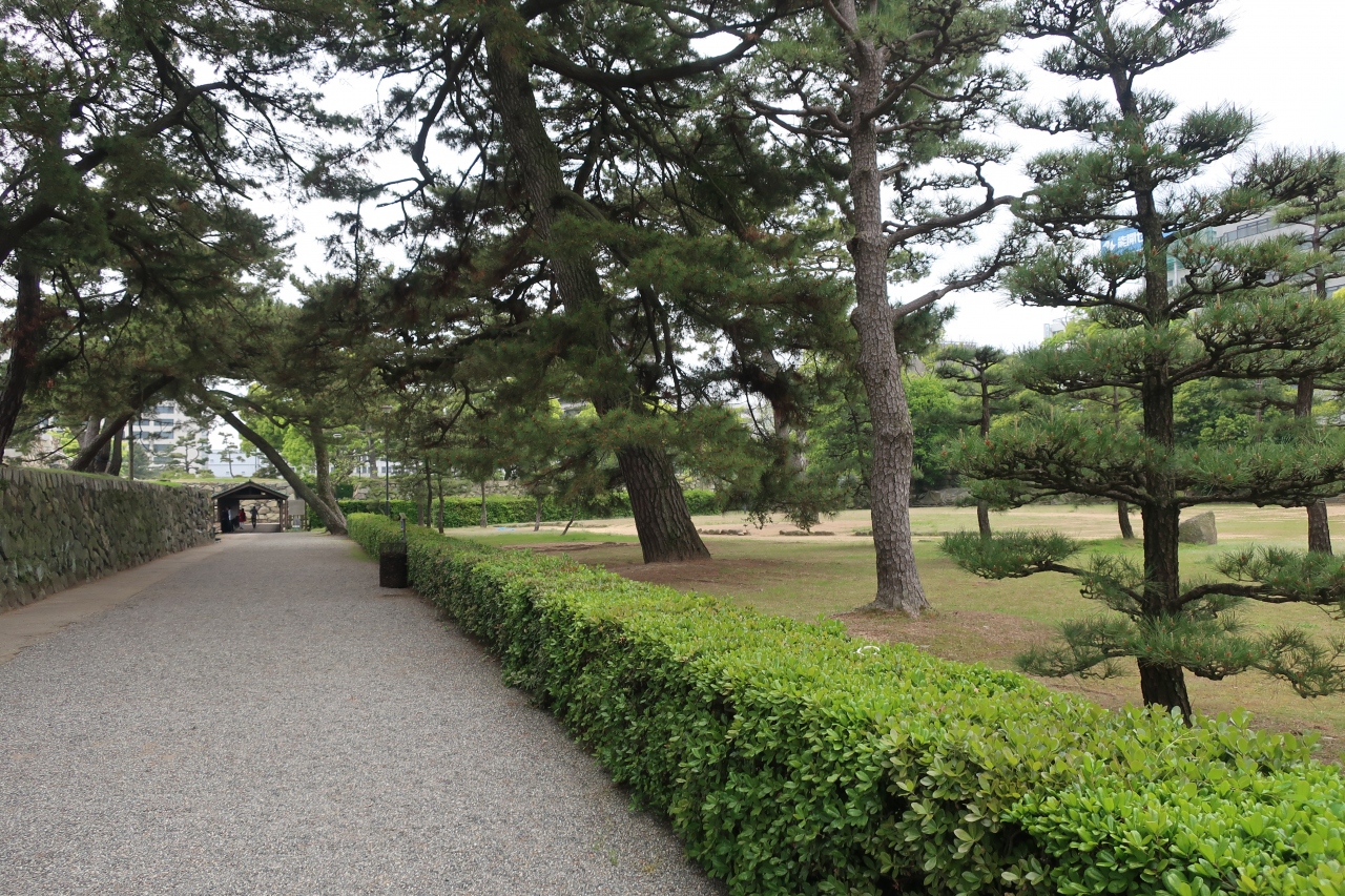JR高松駅から東に歩いて5分で行ける所に玉藻公園があります。旧高松城であった玉藻公園には高松藩藩主の別邸であった披雲閣、高松城時代の月見櫓、艮櫓、天守台址等見所が多数あります。旧高松城は日本三大海城の一つに数えられ、海城ならではの中濠を泳ぐ鯛などおもしろい物が見られます。駅から近く入園料も安くお薦めです。
