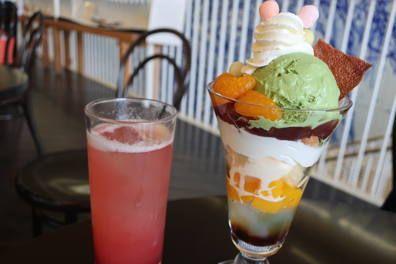 金比羅山の境内にある資生堂パーラーが営むカフェ&レストランです。金比羅山の石段を約500段上った社務所門を背に進んだ先にあります。店内は地下のレストランと1階のカフェがありますが、行った時間(4時)にはカフェしかやって居ませんでした。資生堂パーラーだけに並ぶのは必須かと思いましたが、意外とすぐ席に着けました。
