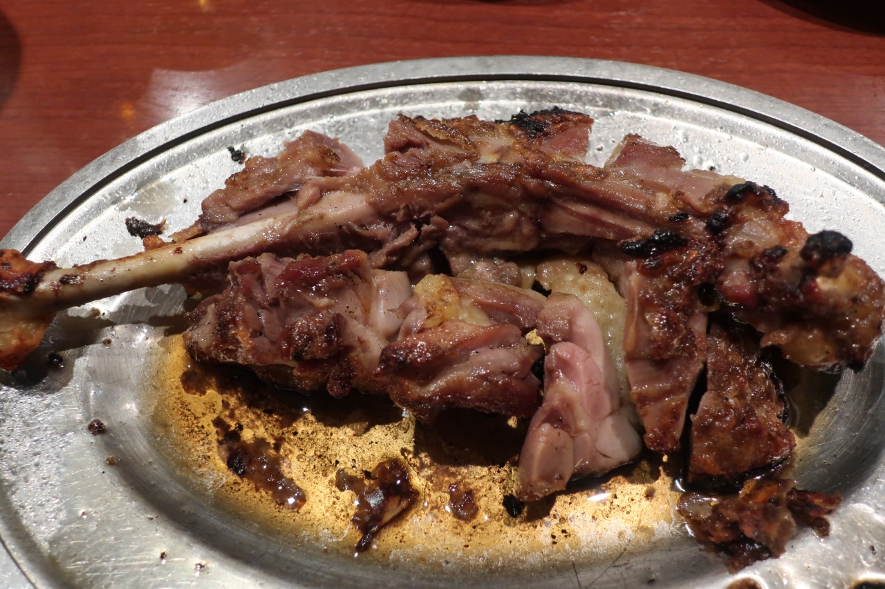 骨付き鳥は親鳥とひな鳥の二種あり、香ばしい味付けで焼き上げた骨付鳥をかぶりついて、豪快に食べるのがこの店のスタイル。兎も角ビールに良く合います。