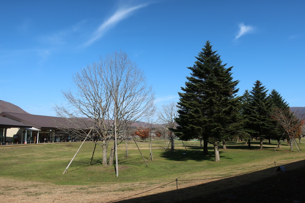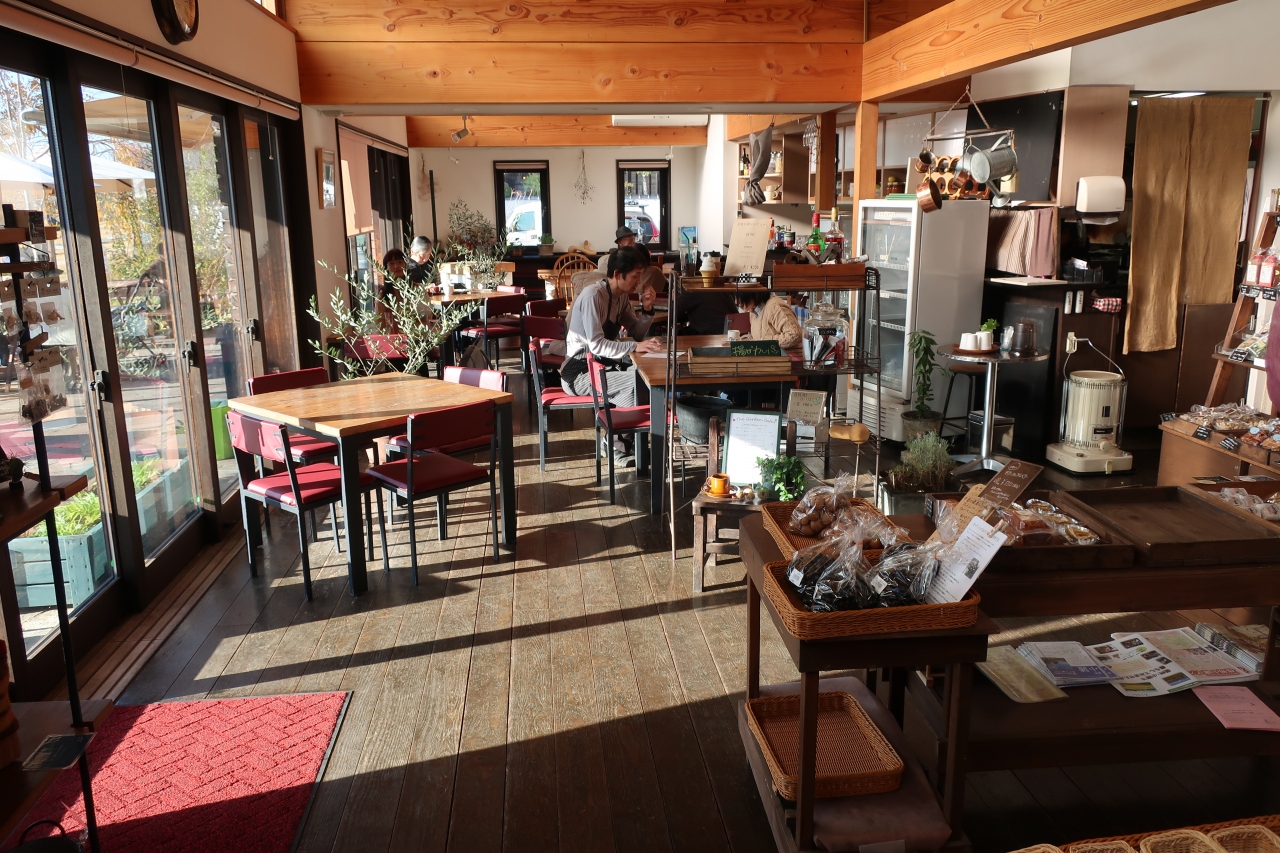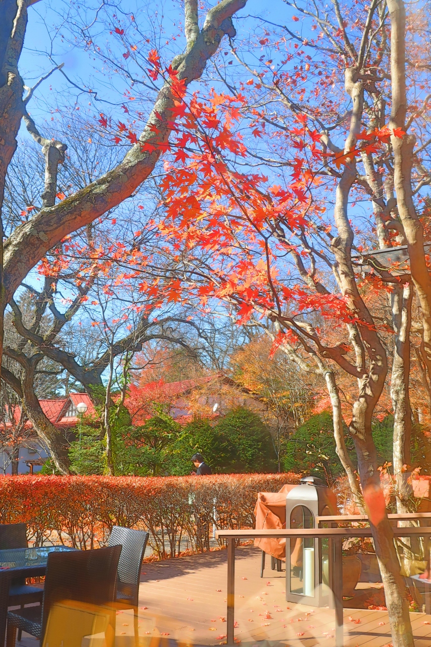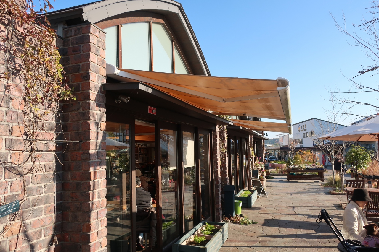 小諸駅の改札を出てすぐ、駅の東側に停車場ガーデンがあります。手入れされた庭園にテラス付きのショップ&カフェが併設されています。秋で花は殆ど咲いておらず、紅葉した木々が青空に映えます。店内ではお菓子、はちみつ、ガーデン用品が販売され、カフェではお茶の他軽食も食べられるので、電車待ちに一服するのに最適です。気持ちの良いカフェです。