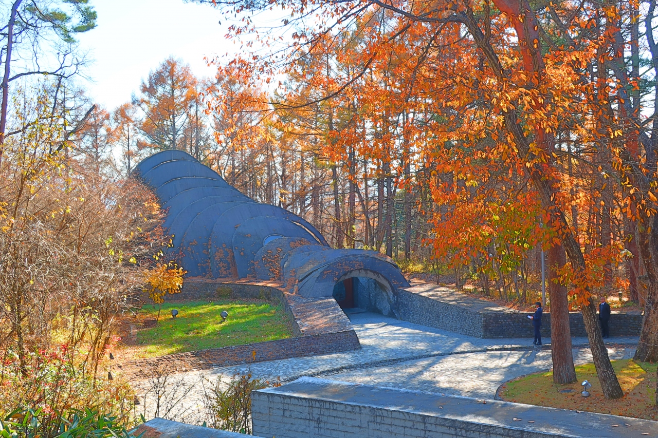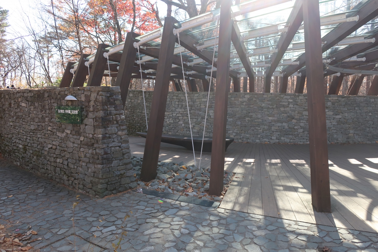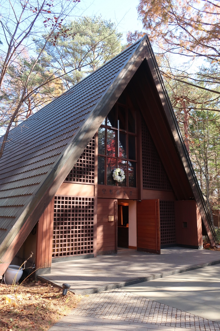 軽井沢のハルニレテラスを過ぎた先を西に入ったホテルブレストンコート駐車場の奥に石の教会内村鑑三記念堂があります。