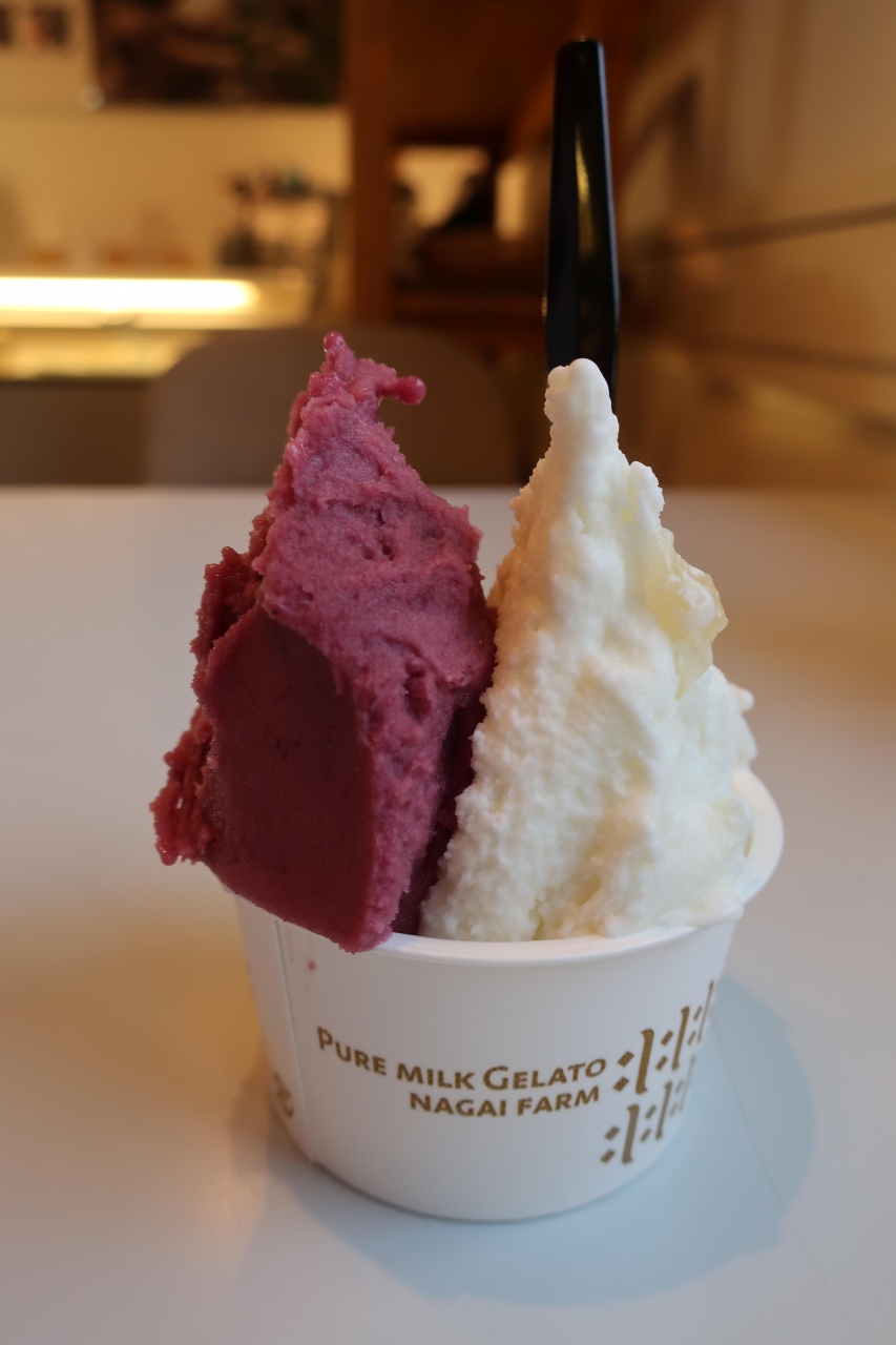 店内はさほど広くはなく、客席は5テーブルほどです。農場で作られたフレッシュな材料を使ったジェラートは寒くなった秋の季節でも購入するのに並ぶ程の人気です。訪れた日は8種類のジェラートで、その中から巨峰とヨーグルトのダブルを頂きました。手作りのジェラートはさっぱりとし、しつこくない本物の味。また訪れたら食べたいですね。- 旅行時期