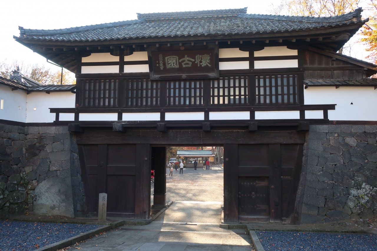 小諸城の遺構では大手門と三の門だけが重要文化財にしてされています。三の門の両側にある石垣の上に作られた渡り櫓には矢狭間・鉄砲狭間が残り、お城の防御機能が見て取れます。そして門の上に掛かる達筆な文字で書かれた「懐古園」額は徳川家達の書。こちらの額は有名ですが、側面にも「懐古園」が掛かっています。こちらは誰の書やら気になりました。- 旅行時期