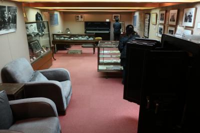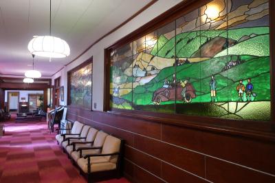 中に入ると赤いカーペットが惹かれ、至る所に軽井沢にちなむステンドグラスがあり、これを見るだけでも行く価値があります。また、万平ホテル資料館もあり、キッシンジャーの椅子、レノンのピアノも展示されています。