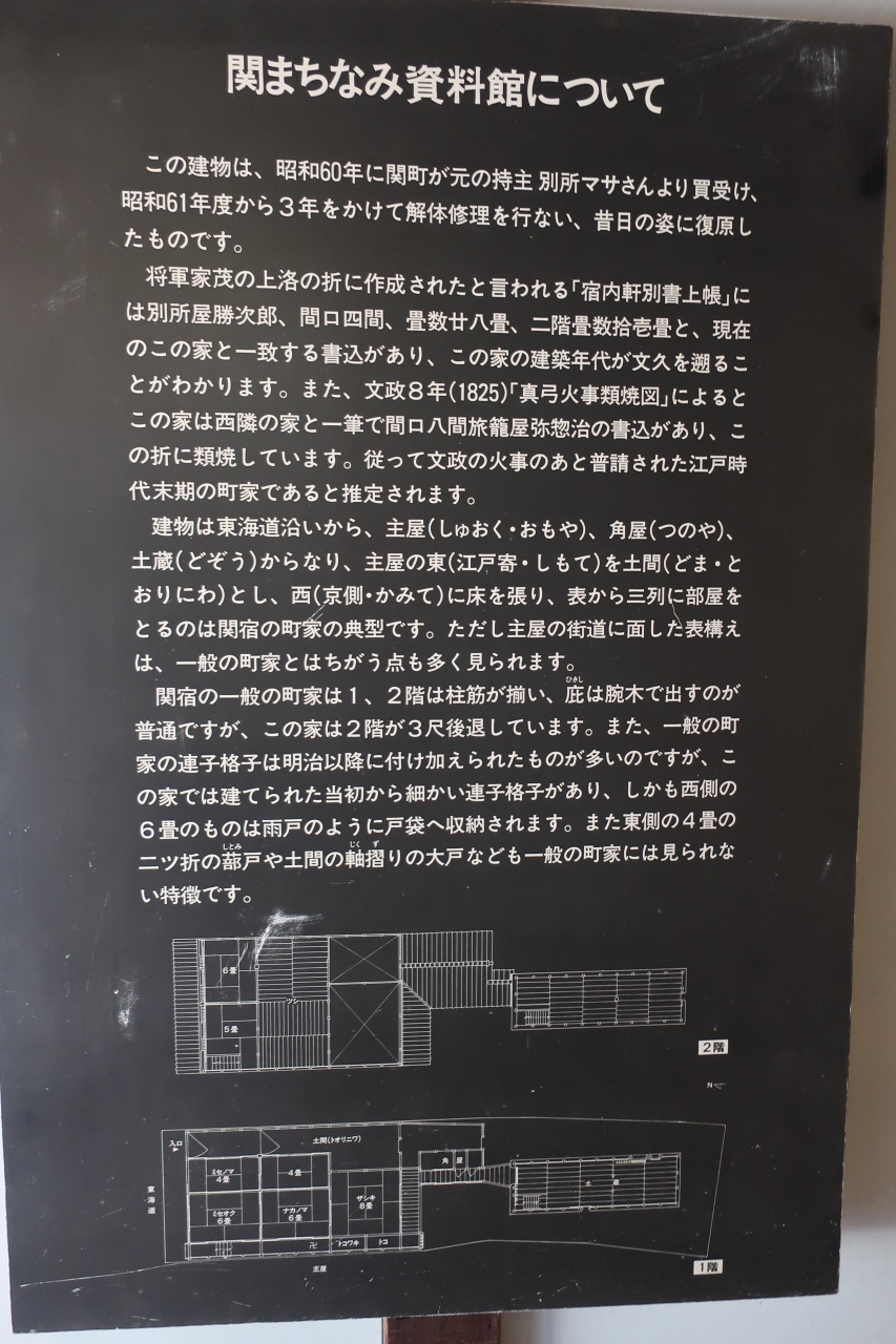旧東海道 関宿の百六里庭の東側に関まちなみ資料館があります。江戸時代末期に建てられた町家 旧別所邸を利用した資料館です。内部では箱階段、くど、井戸など町家での生活を偲ばす場所があり、関宿の歴史資料が展示されています。箱階段を上れる機会は余り無く手すりのない階段は上り辛いですが、利にかなった家具だなと感心。
