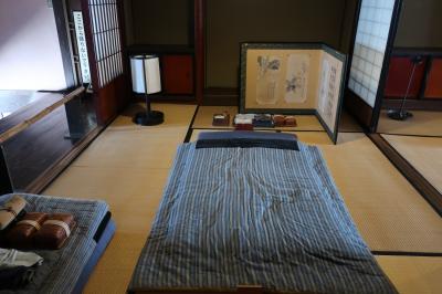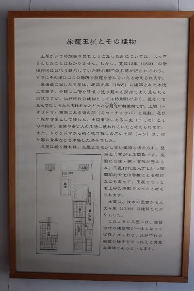 旧東海道 関宿の郵便局の東隣りに関宿旅籠玉屋歴史資料館があります。「関で泊まるなら鶴屋か玉屋」と詠まれた関宿を代表する大旅籠が当時そのままの姿で残る貴重な建物です。白漆喰の二階、軒下のある建物自体も見ものですが、内部では旅籠で使われていた食器、膳、旅の資料や、布団が敷かれた部屋があり、江戸時代の旅の姿を垣間見ることができます。