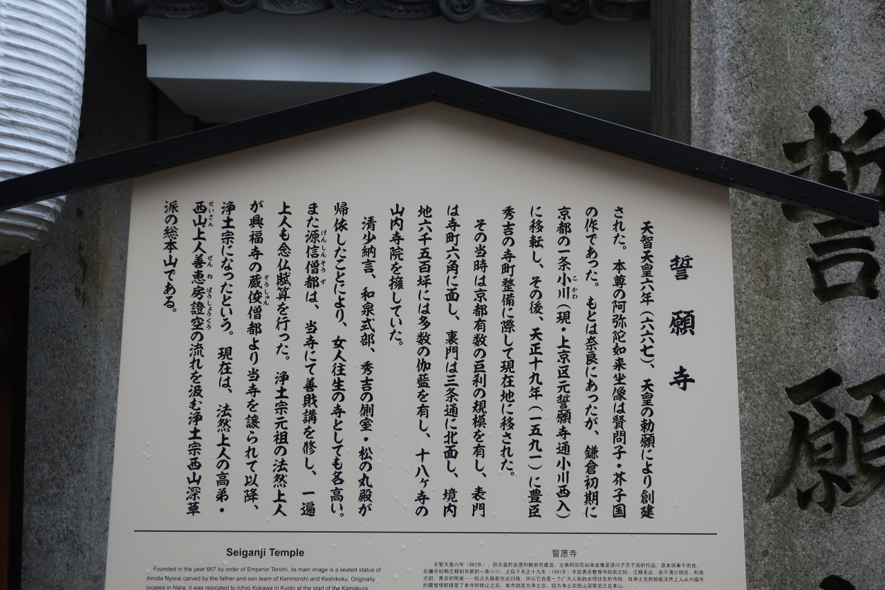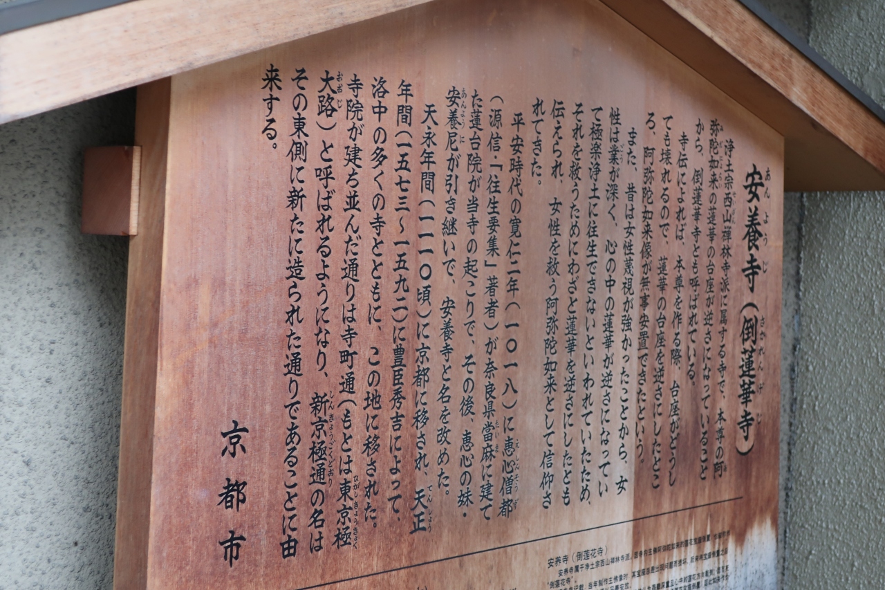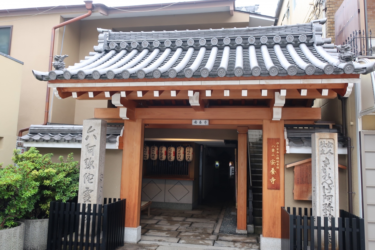 新京極 蛸薬師の南側にある浄土宗西山禅林寺派のお寺です。通りに面した山門は真新しく、境内に入るといきなり2階建てのお堂?がある。本尊の阿弥陀如来像は階段を上がった2階に鎮座しています。平安時代からある由緒あるお寺で、女人往生のお寺としてしられているそうですが、観光的には行かなくても良いと思います。