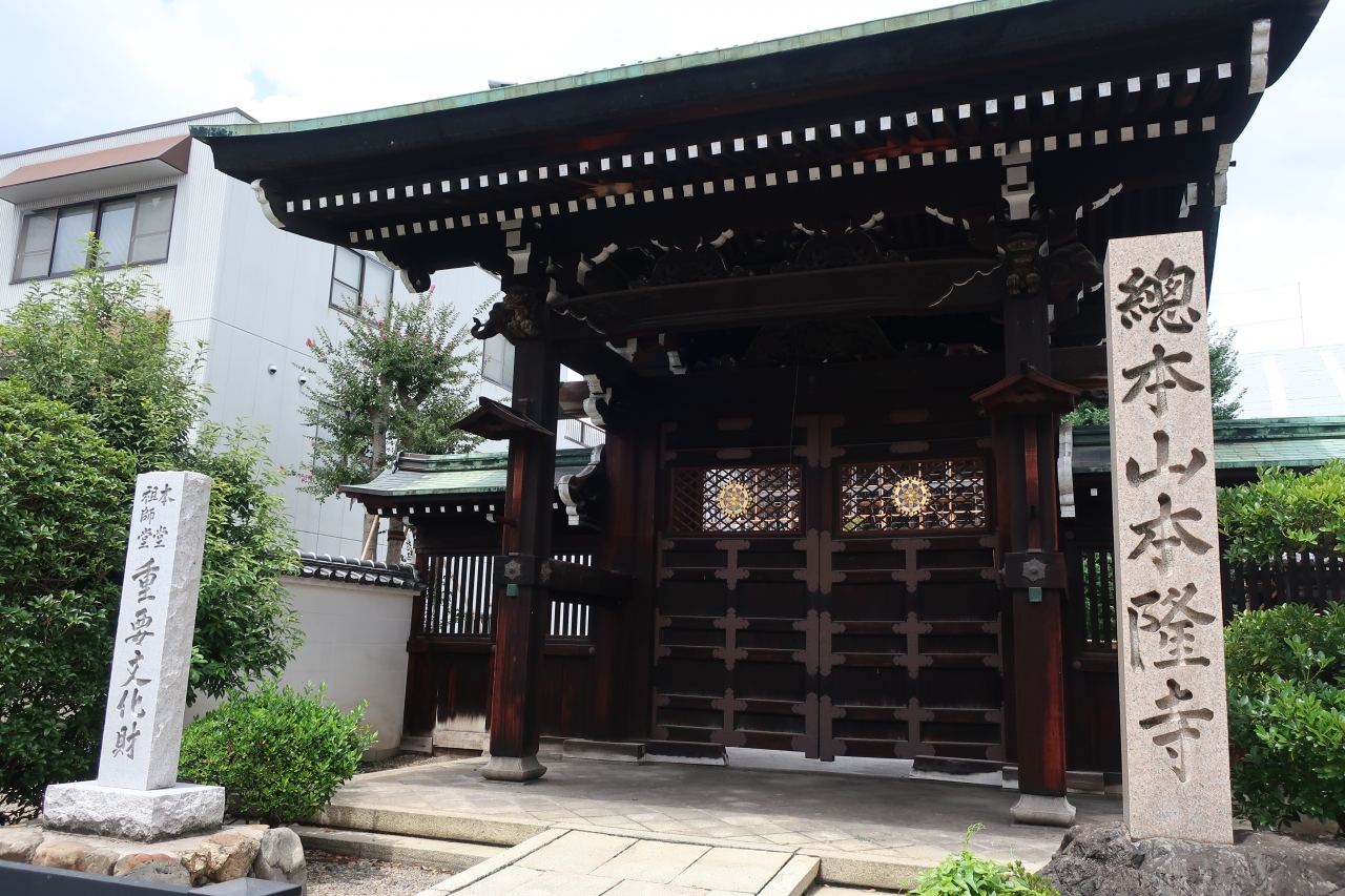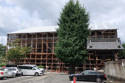 西陣の五辻通りの北側に本隆寺はあります。丁度、西陣の中央にあり法華宗真門流の総本山である境内はとても広く、こんな所に大きな寺院があるとは思いませんでした。しかし、大きな本堂は木製の足場に覆われ平成35年まで大改修中で、近寄れず参拝も見学もできません。