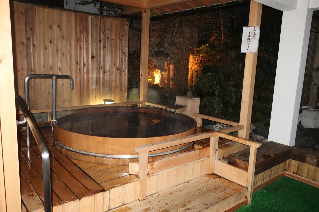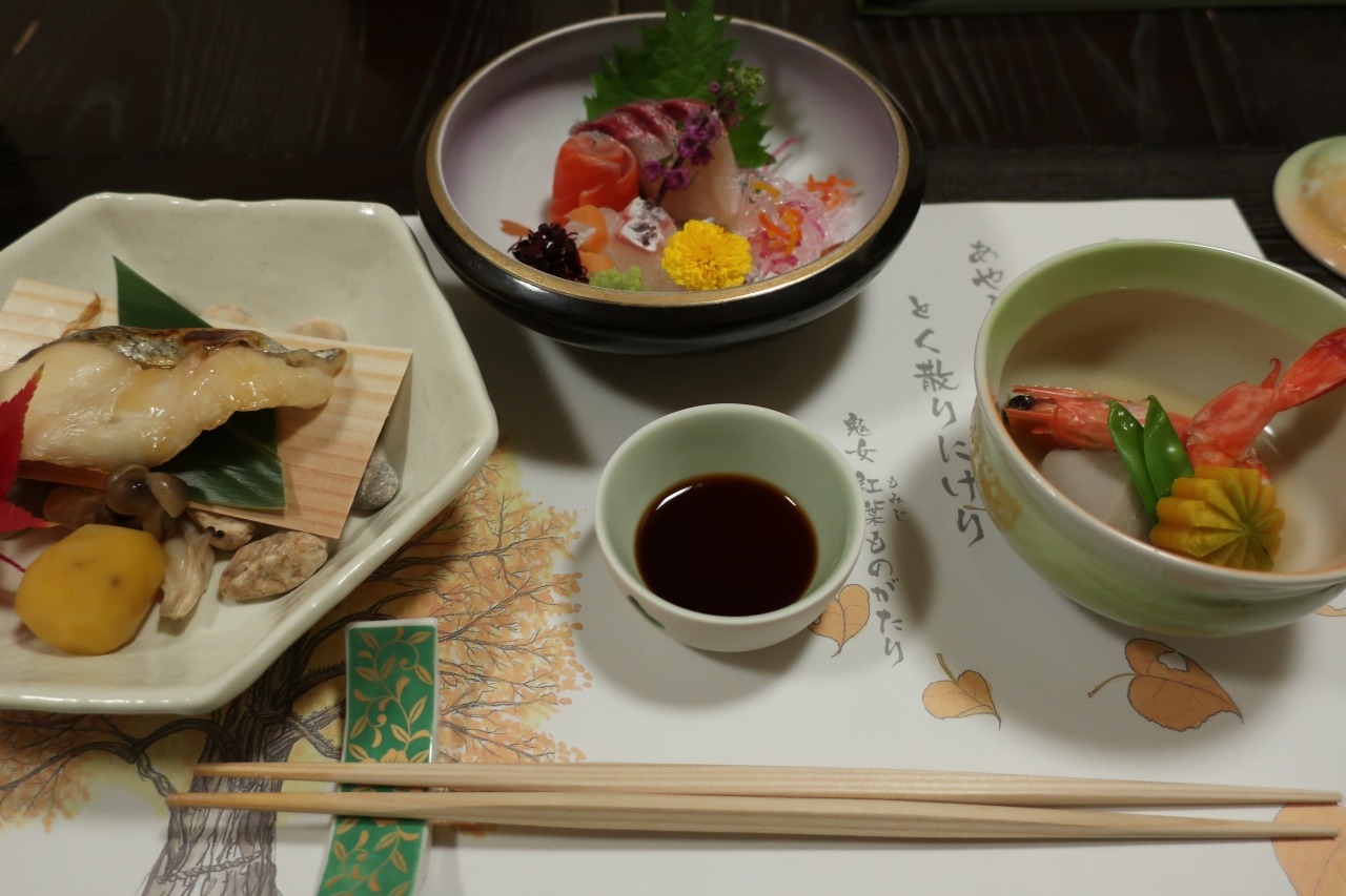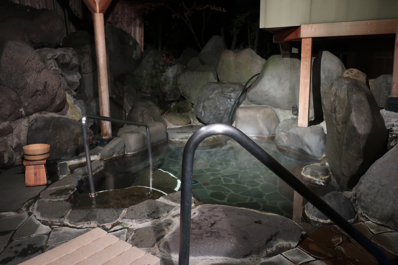 別所温泉の北向観音のすぐ隣にある旅館です。本館の柏和亭と離館の四季亭に15室の部屋があります。泊まった鳥月の間は四季亭の1階にある内風呂温泉付きの和洋室。少し白く濁った温泉はぬるめの設定なので長時間入れますが、ポカポカになります。また、肌にも良いと評判です。食事は本館2階の個室で懐石料理。朝は和洋食を選択できます。