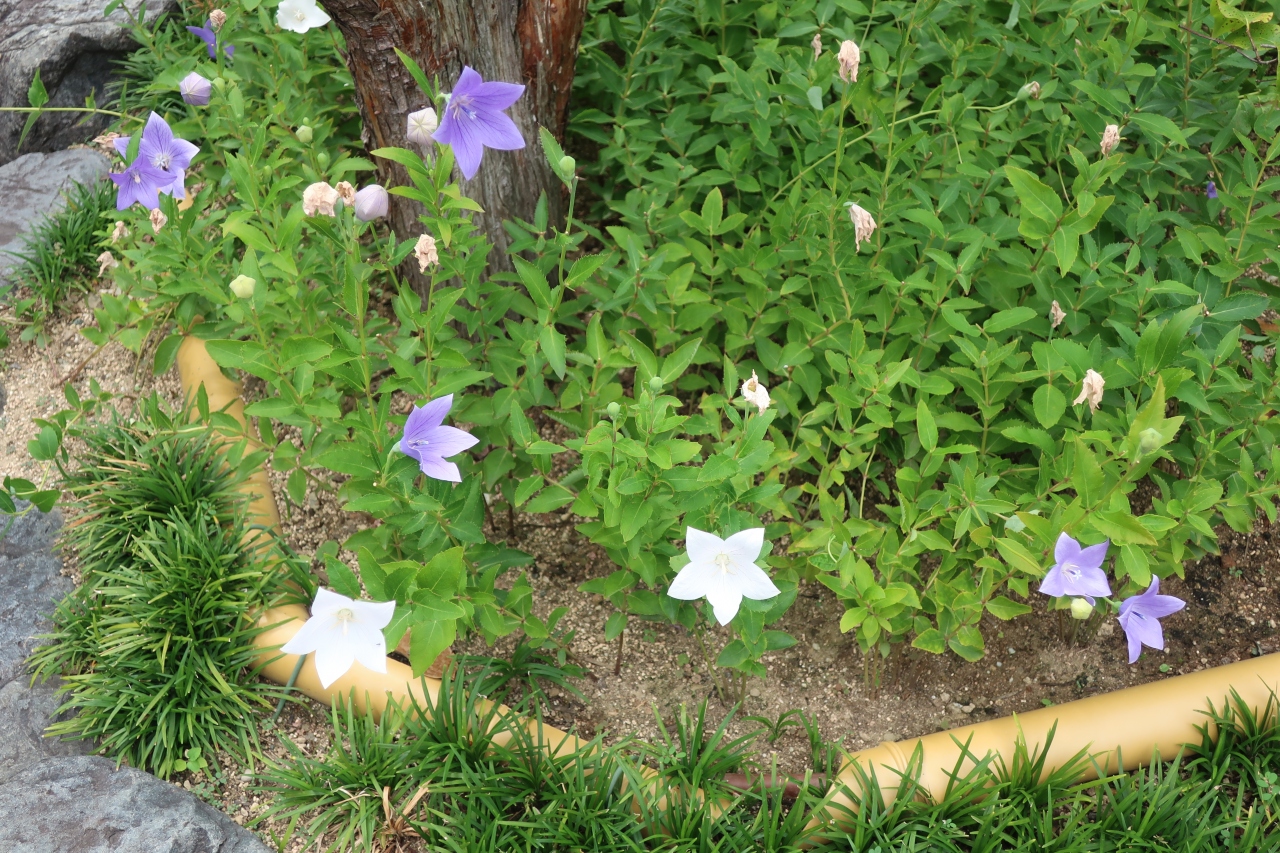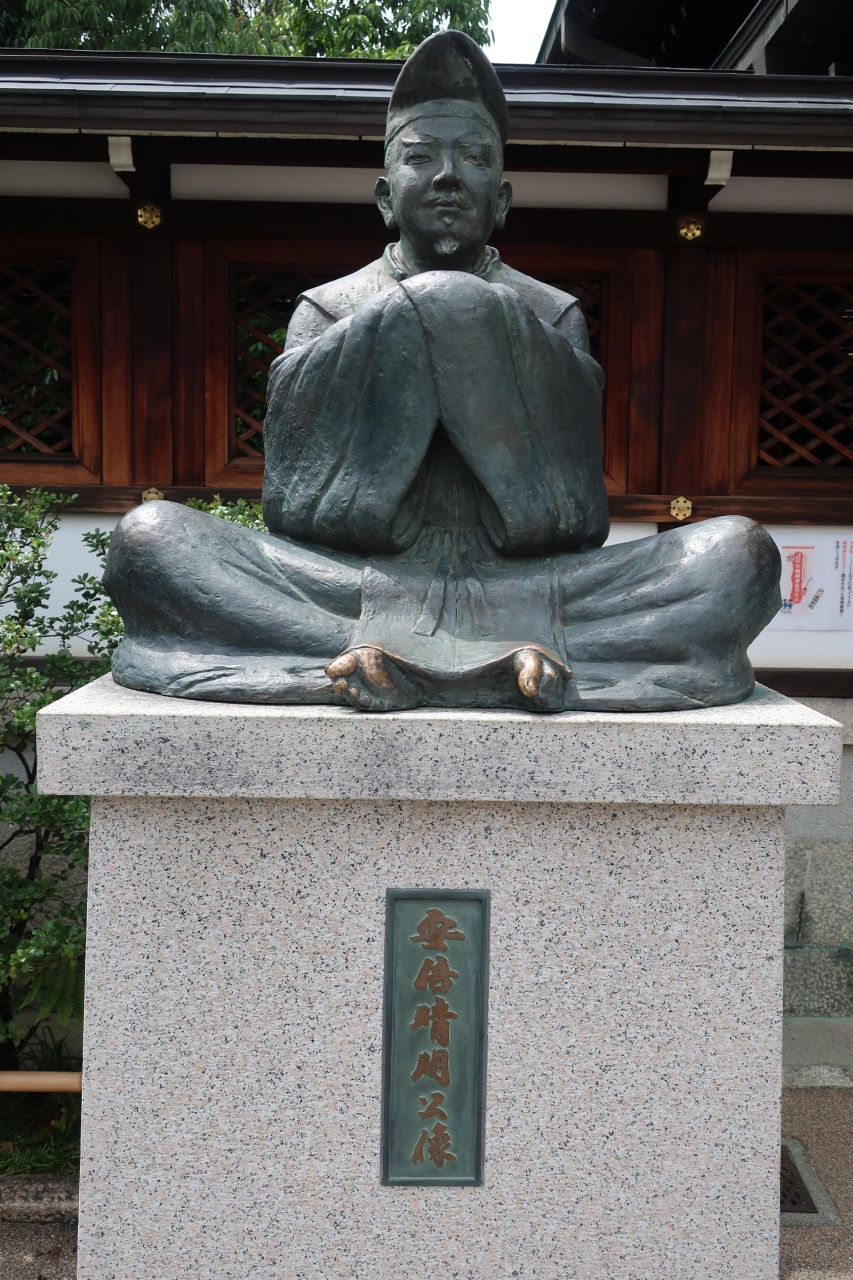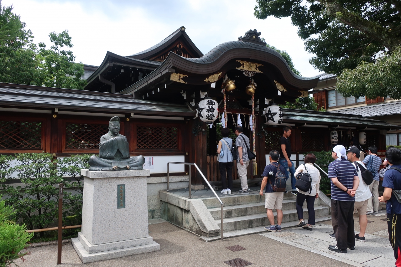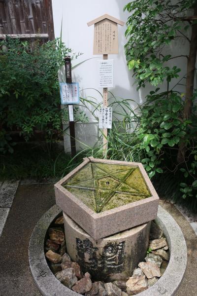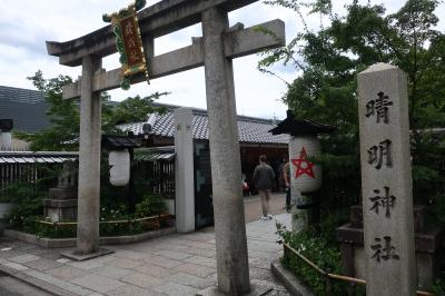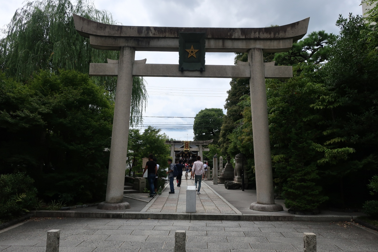 映画でも有名になった陰陽師 安倍晴明を祀る晴明神社は一条戻橋近くの堀川通り沿いにあります。鳥居に架かる額には五芒星が描かれています。境内はたくさんの人で溢れんばかりです。8月は桔梗が咲いているのですが、五芒星の形をしてることに気付いている人は少ないようでした。