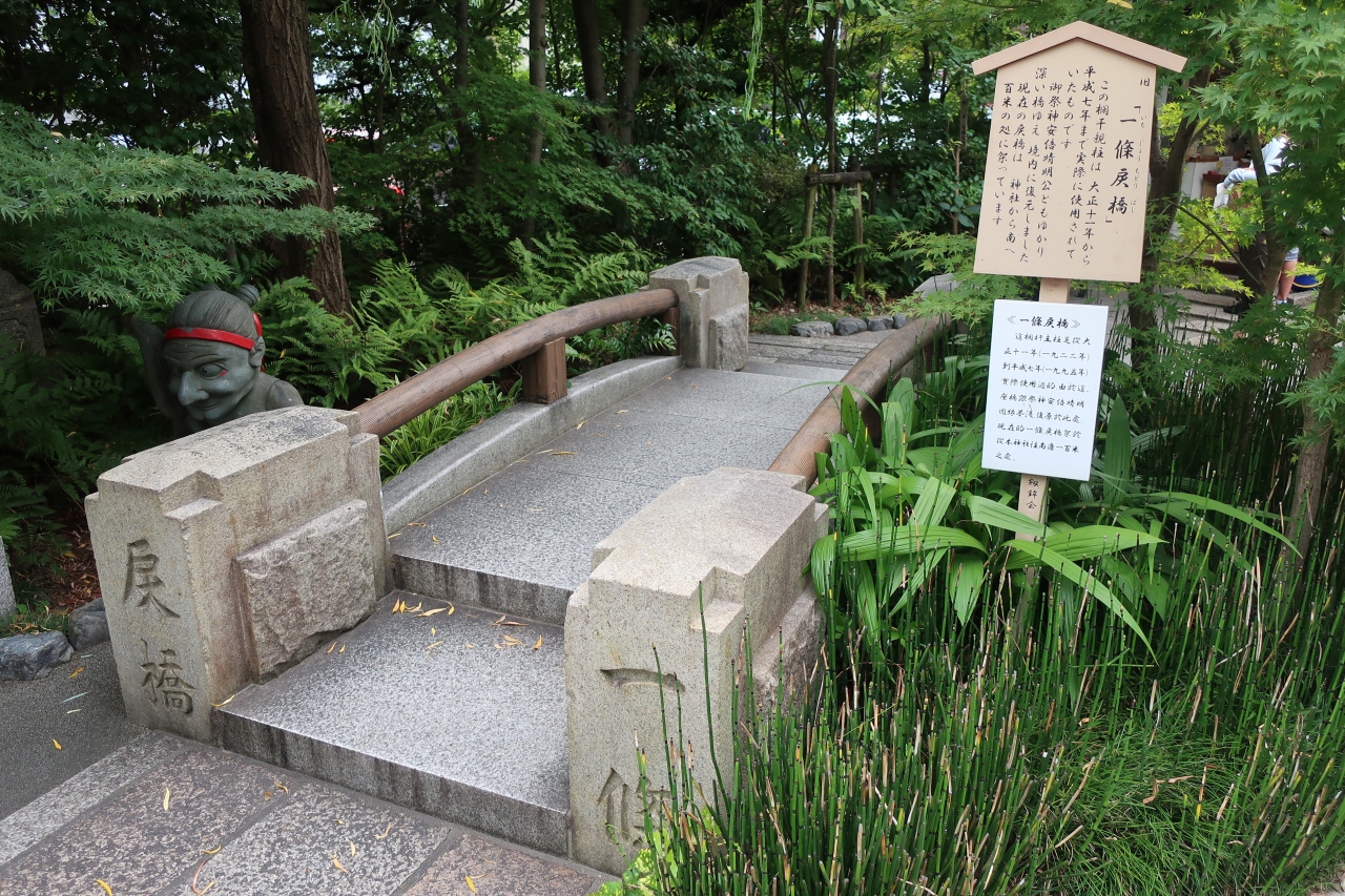 一条堀川に架かる橋です。平安時代からある橋で洛中と洛外を分ける橋として架けられた古い橋です。そのため、鬼や妖怪が現れる心霊スポットとしても有名で、行っちゃいけない橋と言う意味で戻橋と言う名がついています。
