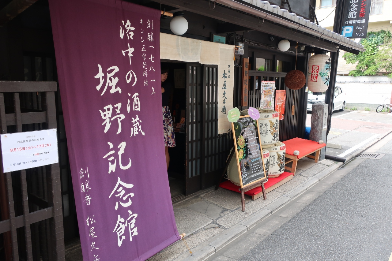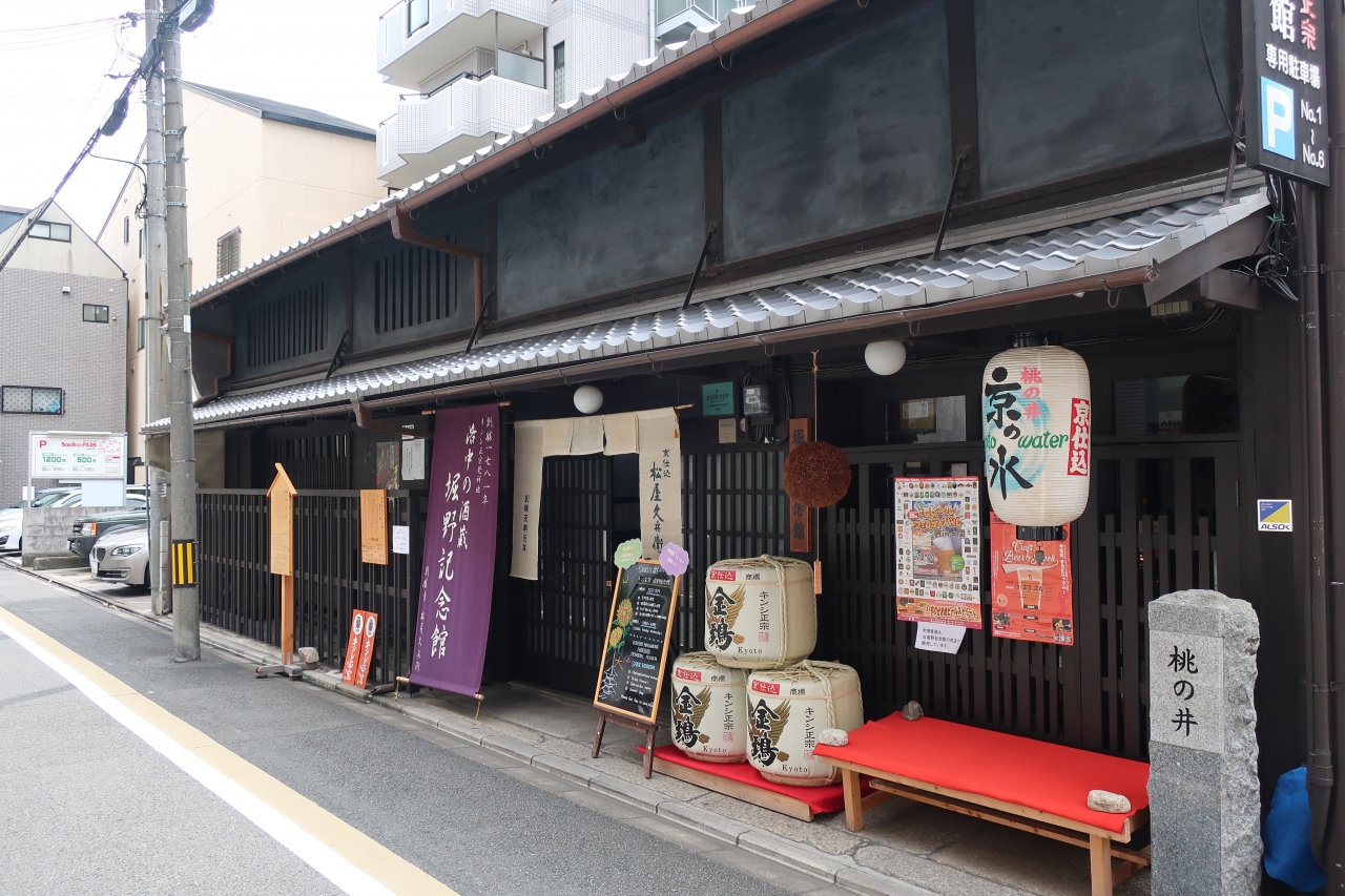 二条堺町通りを上がった街中に京の名酒 キンシ正宗の発祥の地である堀野記念館があります。中に入ると住宅部では当時の資料が展示され、奥には蔵、そして一番の見所は今もタンタンと湧き出る桃の井が庭にあり美味しい名水が飲めます。そして最後に日本酒、ビールの試飲ができます。なので、駐車場がありますが、車で行くと飲めないですよ。