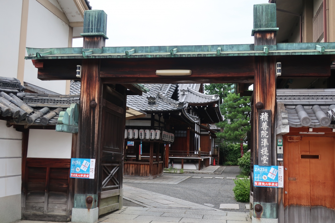 聖護院門跡の東隣りにある積善院は、聖護院の塔頭で凖提堂、五大力さんとも呼ばれている寺院です。狭い境内で山門を潜るとすぐ先に本堂の準提堂があり、本尊の準提観世音菩薩像と不動明王像が祀られています。
