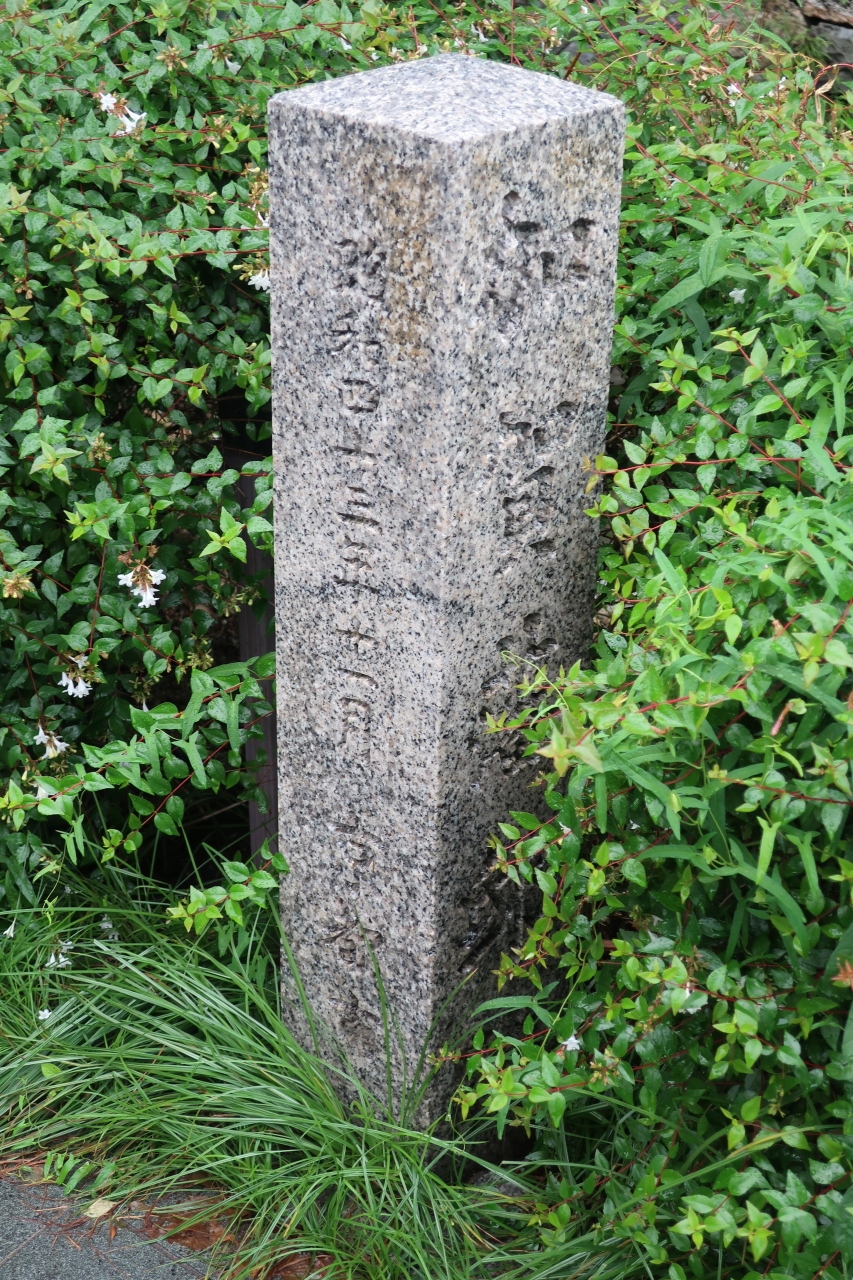 木屋町通御池の南側、高瀬川沿いの植え込みの中に加賀藩邸跡の石碑が立っています。駒札はありませんでした。