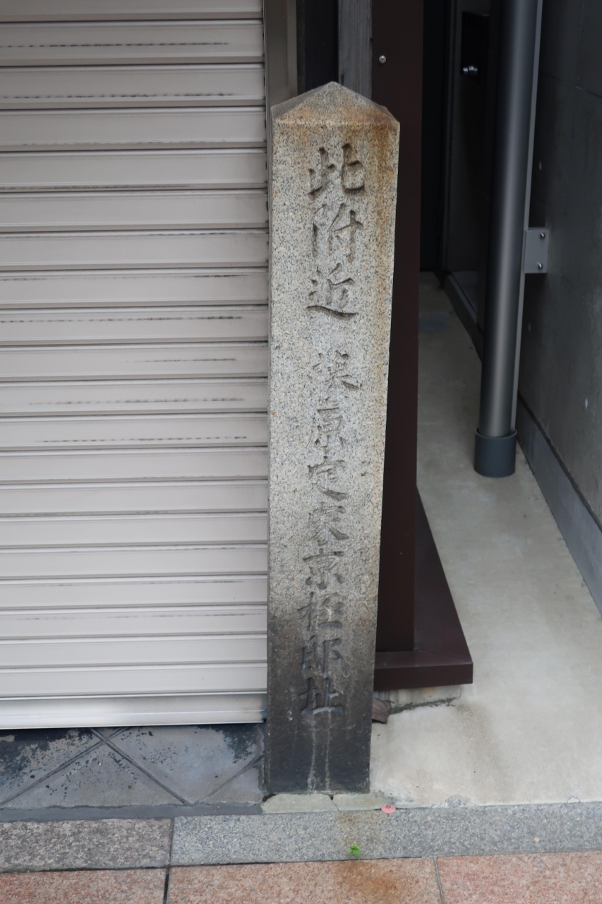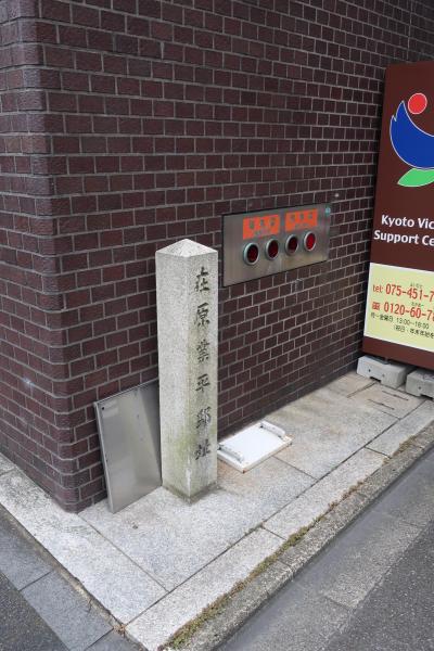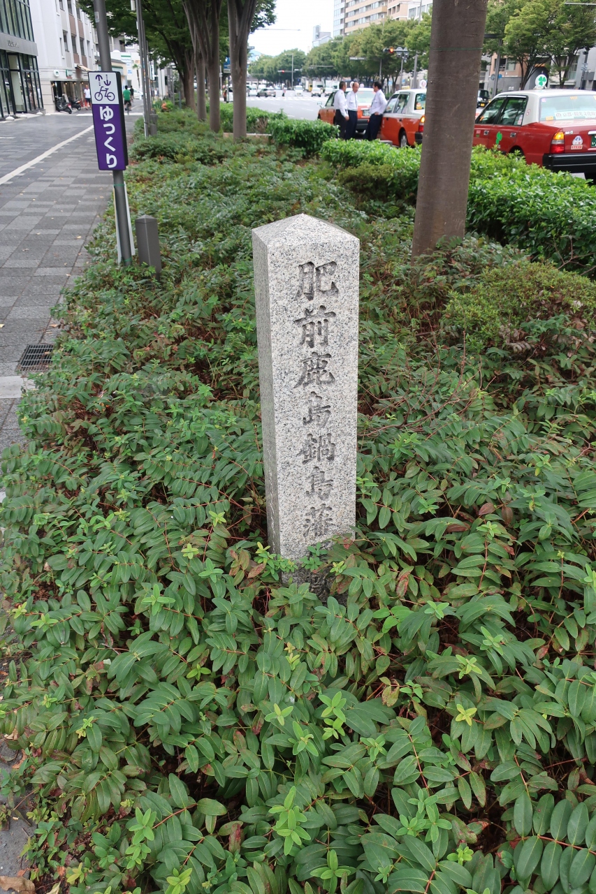 御池通りの南側、新町通りの交差点近くの歩道植え込みの中に肥前鹿島鍋島藩屋敷跡の石碑が建てられています。佐賀鍋島藩屋敷跡の石碑は四条通り近くにありましたが、こちらは鍋島藩の3つの支藩 小城・蓮池・鹿島の三家の一つ。幕末期はここにも討幕の志士がいたのでしょうか?見ごたえはありません。