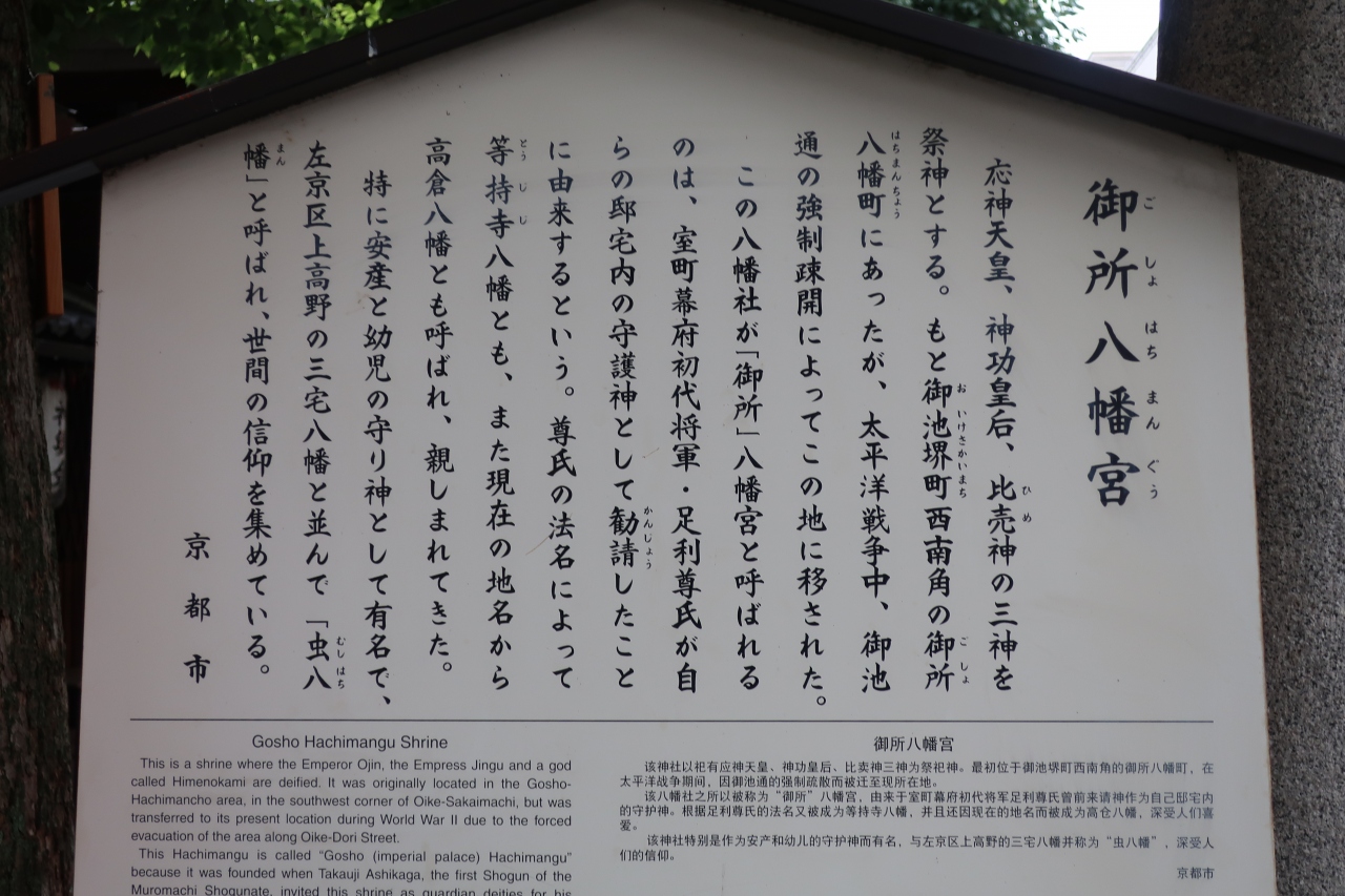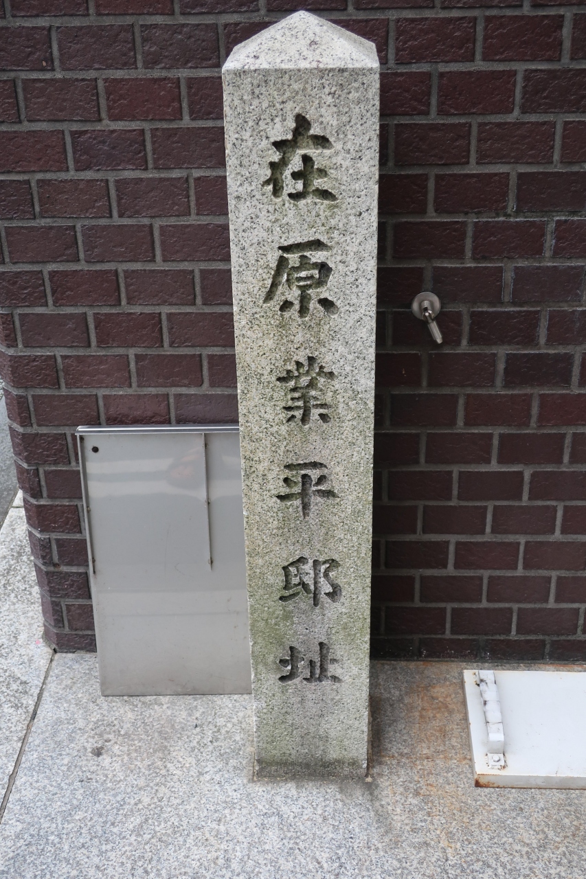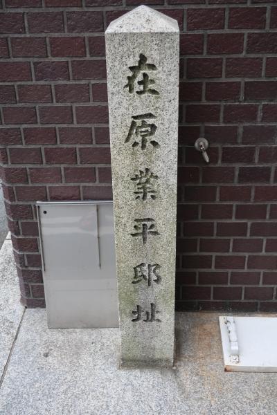 御池通りから高倉通りを上がった東側に足利尊氏邸・等持寺跡があります。京都府保険事業協同組合会館の入口右手の狭い植え込みの中に石碑と説明版があるのですが、地図だけ見ていっても非常に場所が分かり辛いです。周囲を探し回ってやっと見つけた程です。
