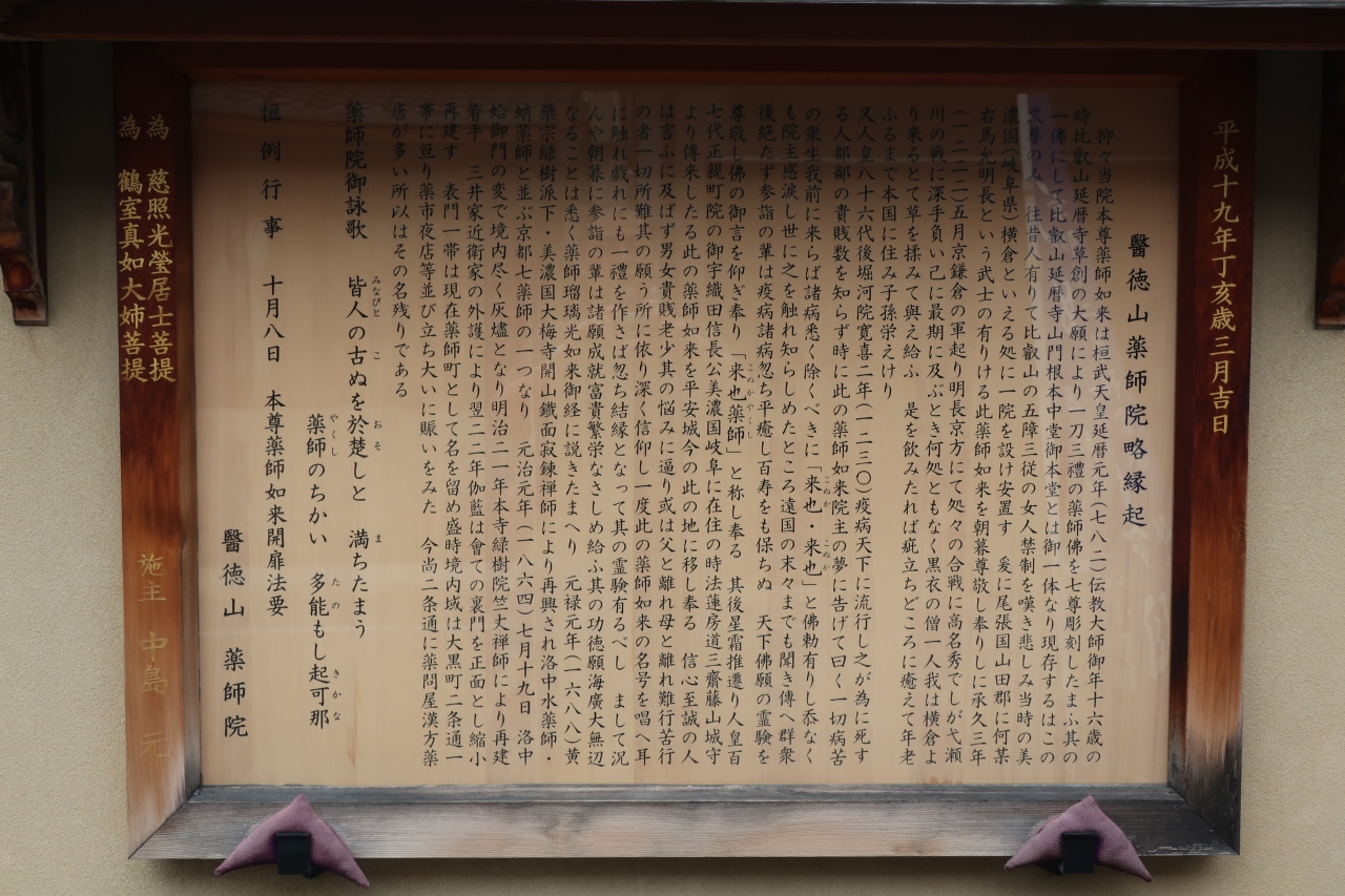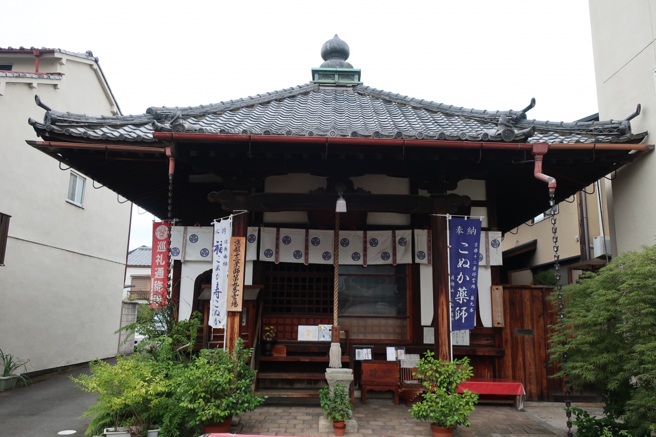 夷川通り、釜座通りを下った西側に変わった名前のお寺、来ぬか薬師があります。正式名称は薬師院。古いお寺で本尊の薬師如来が住職の枕元に立ち、病の流行を取り除くのに「来ぬか、来ぬか」と伝えた、と言う古事からこの名で呼ばれるようになったとか。信長の勧請もあった薬師ですが、蛤御門の変で焼失、現在はコンクリの上に小さな本堂があるだけ。行った時も他には誰も居ませんでした。