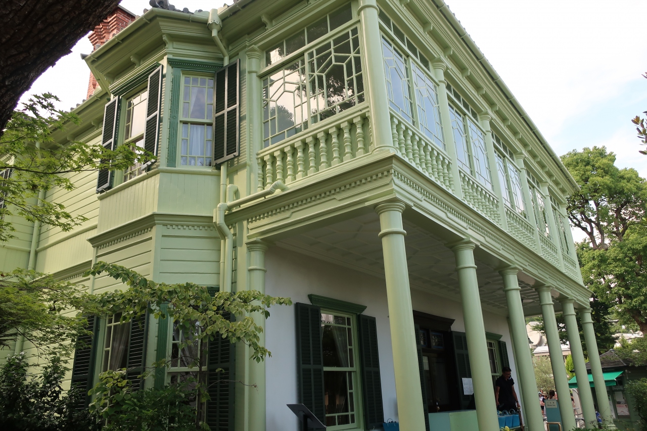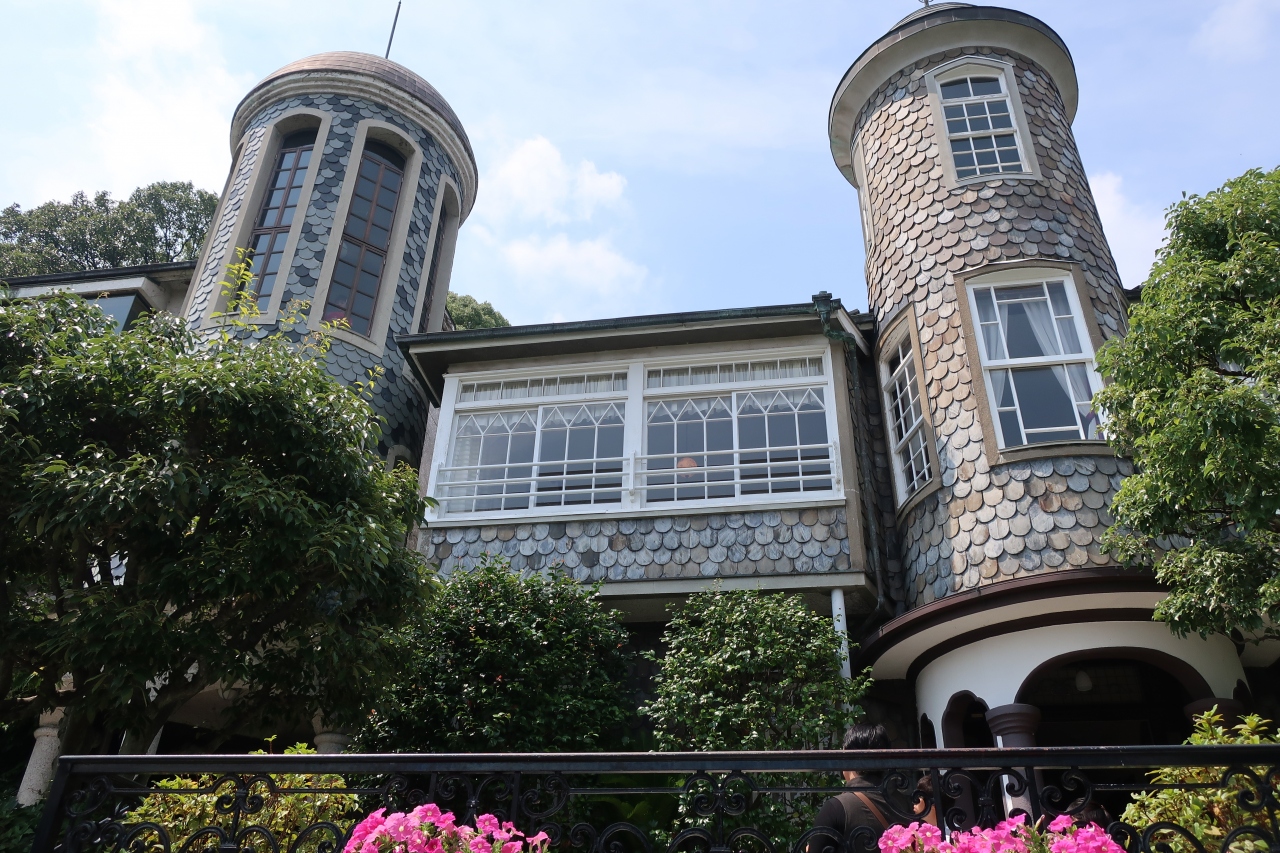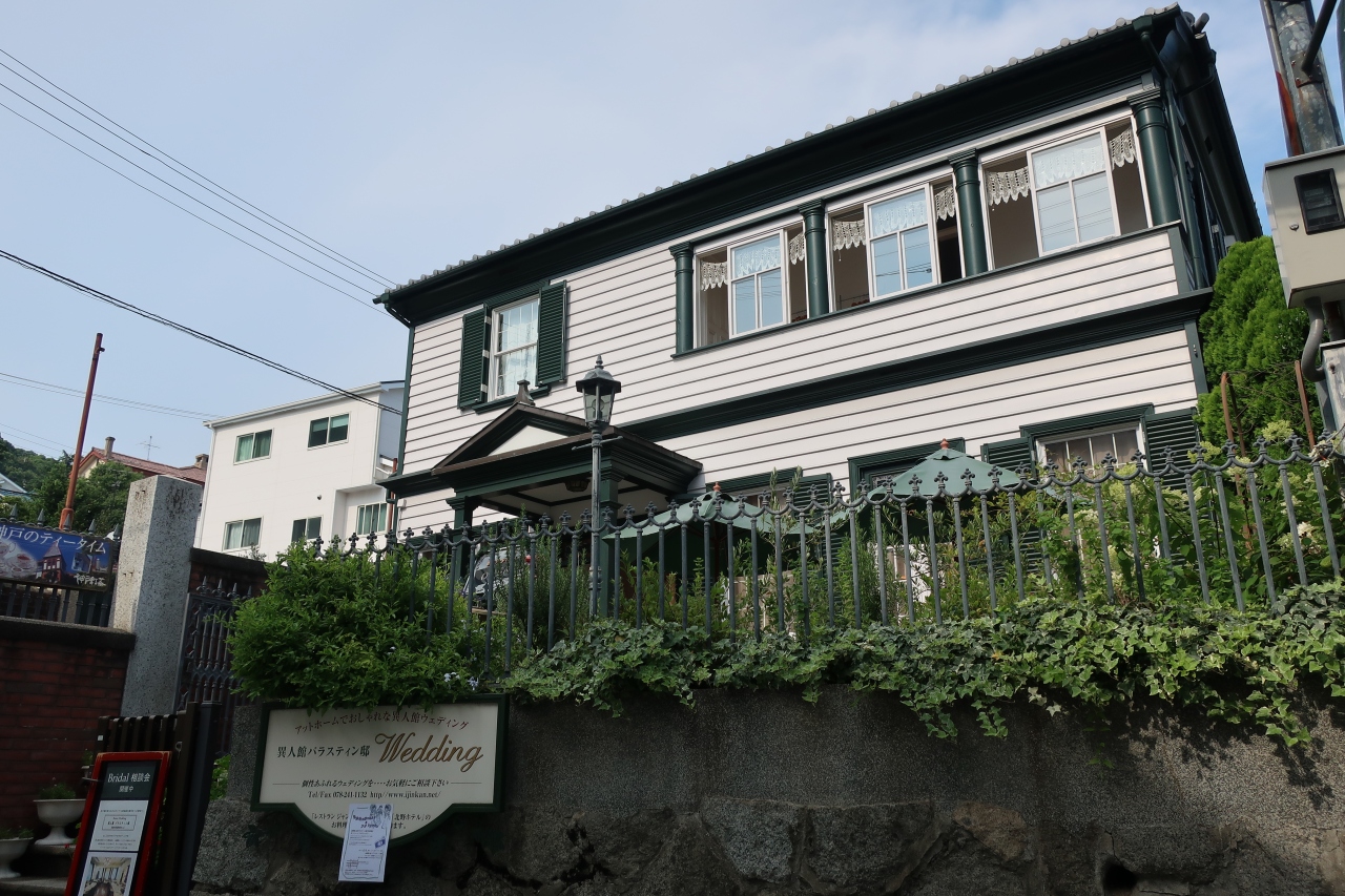 神戸 北野の天神坂の途中にある異人館の一つです。明治期にロシアの貿易商パラスティンの邸宅として建てられた白い外壁に、緑いろの窓が特徴的な洋館です。現在はカフェに改装されており異人館と言うよりは、お店と言って良いでしょう。外観からの見学で十分かと思います。